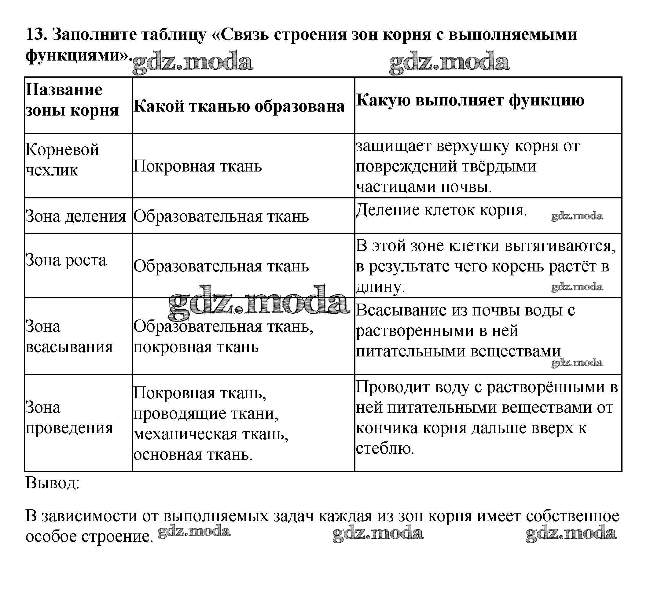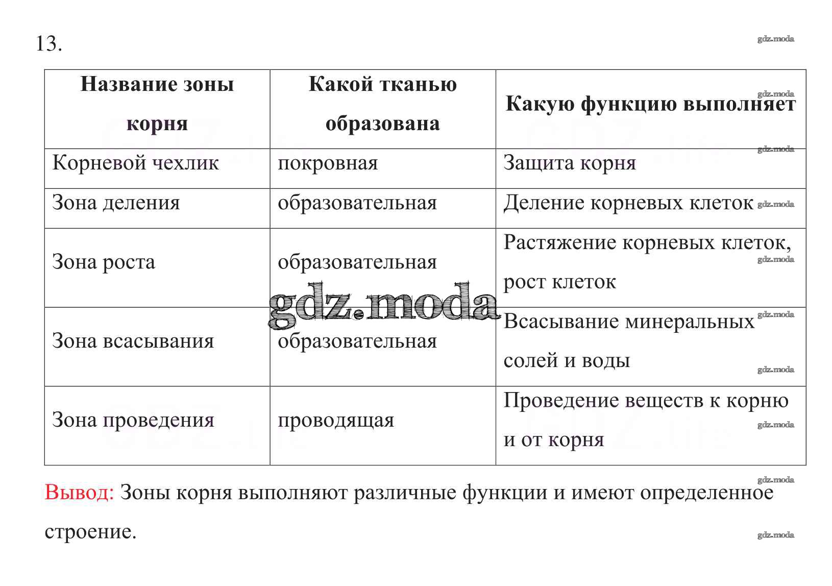 ОТВЕТ на задание № 13 Рабочая тетрадь по Биологии 6 класс Пасечник УМК