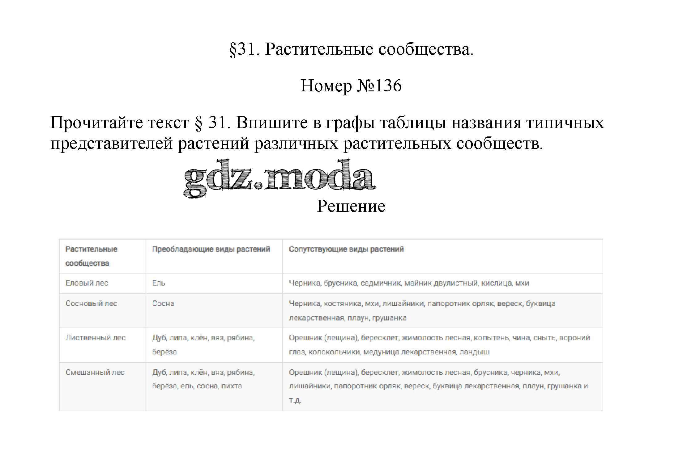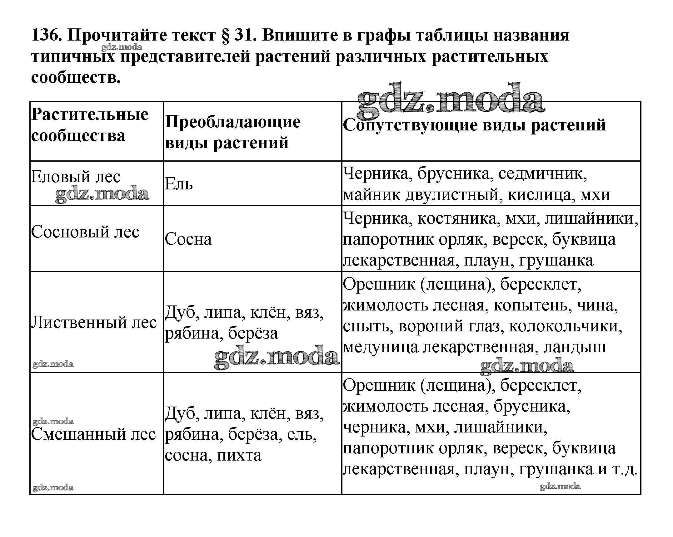 ОТВЕТ на задание № 136 Рабочая тетрадь по Биологии 6 класс Пасечник УМК