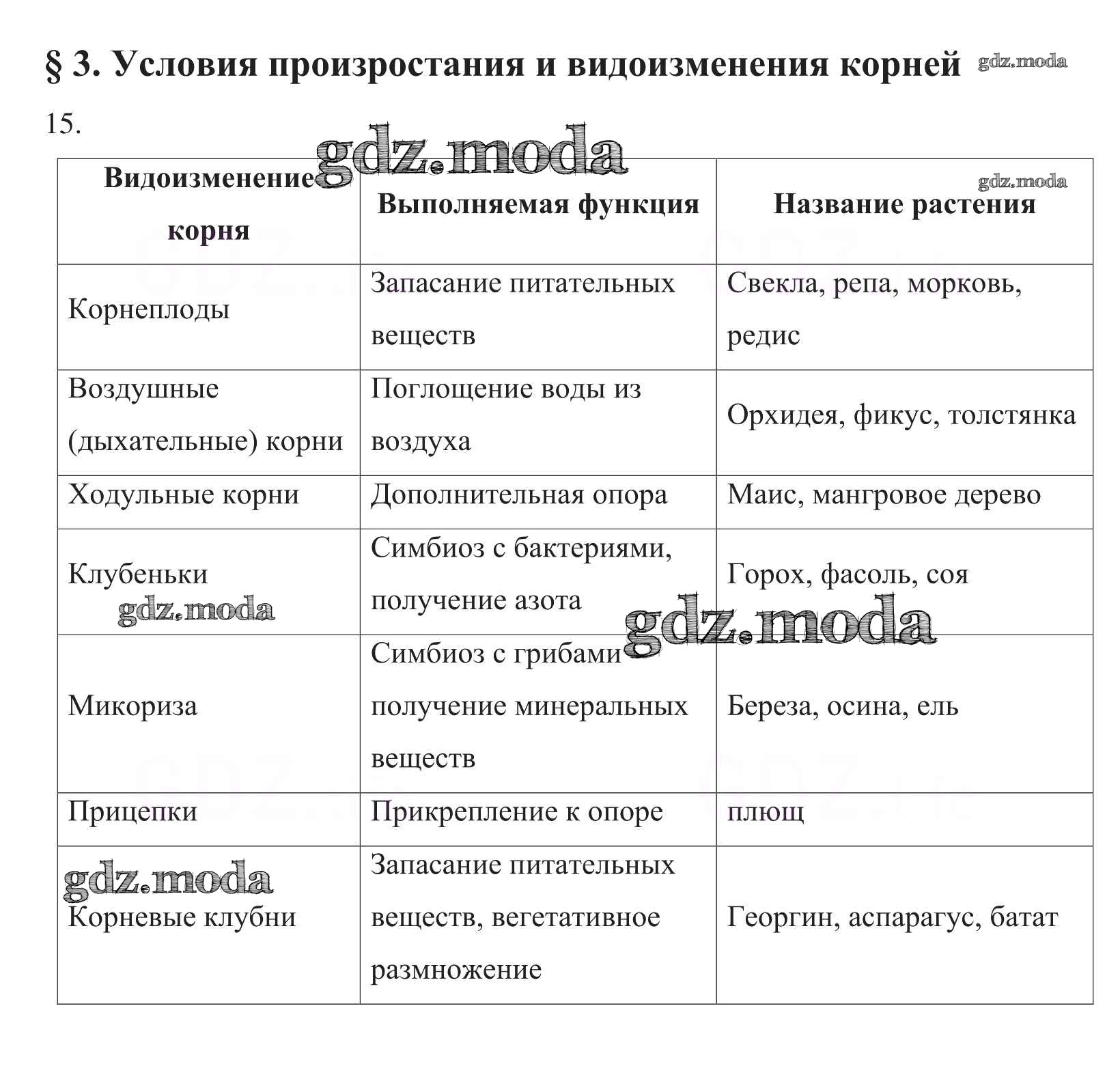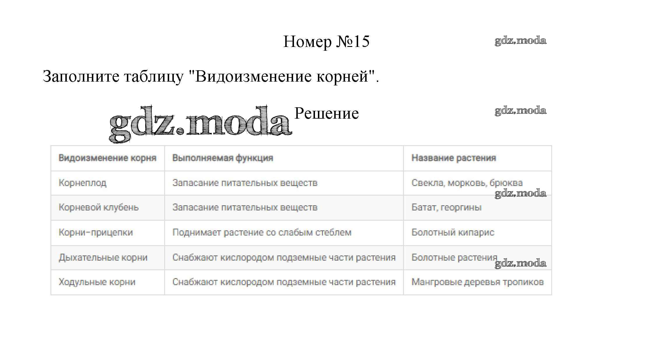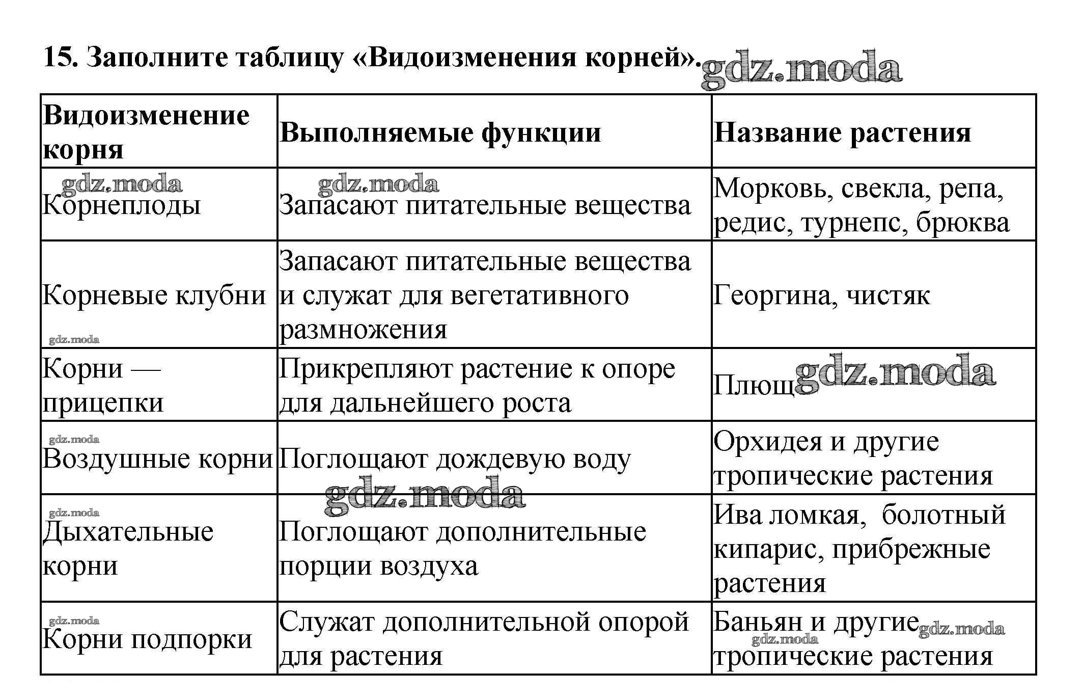 ОТВЕТ на задание № 15 Рабочая тетрадь по Биологии 6 класс Пасечник УМК