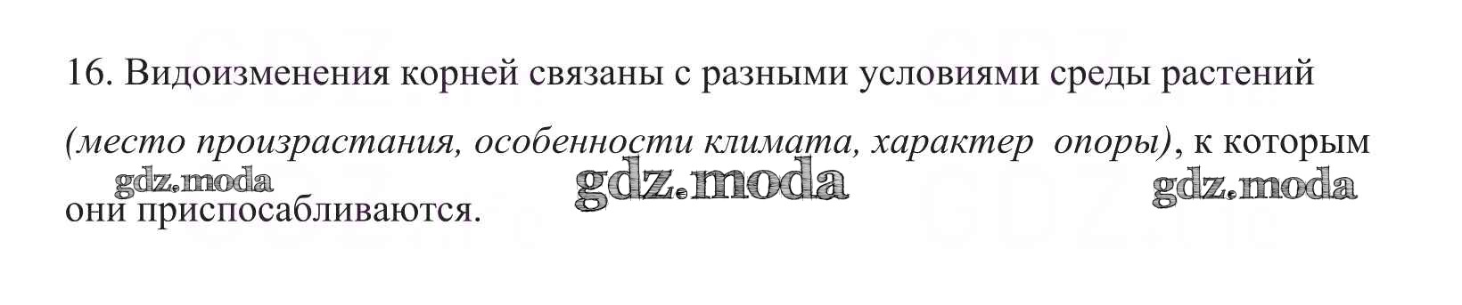 ОТВЕТ на задание № 16 Рабочая тетрадь по Биологии 6 класс Пасечник УМК