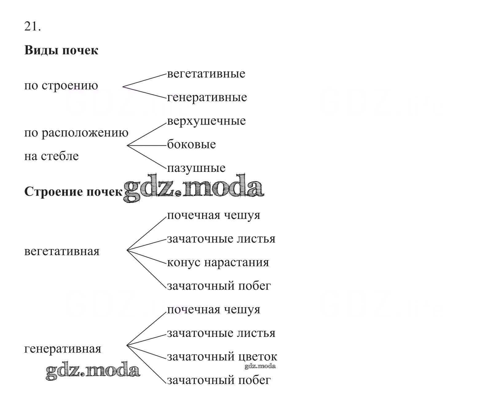 ОТВЕТ на задание № 21 Рабочая тетрадь по Биологии 6 класс Пасечник УМК