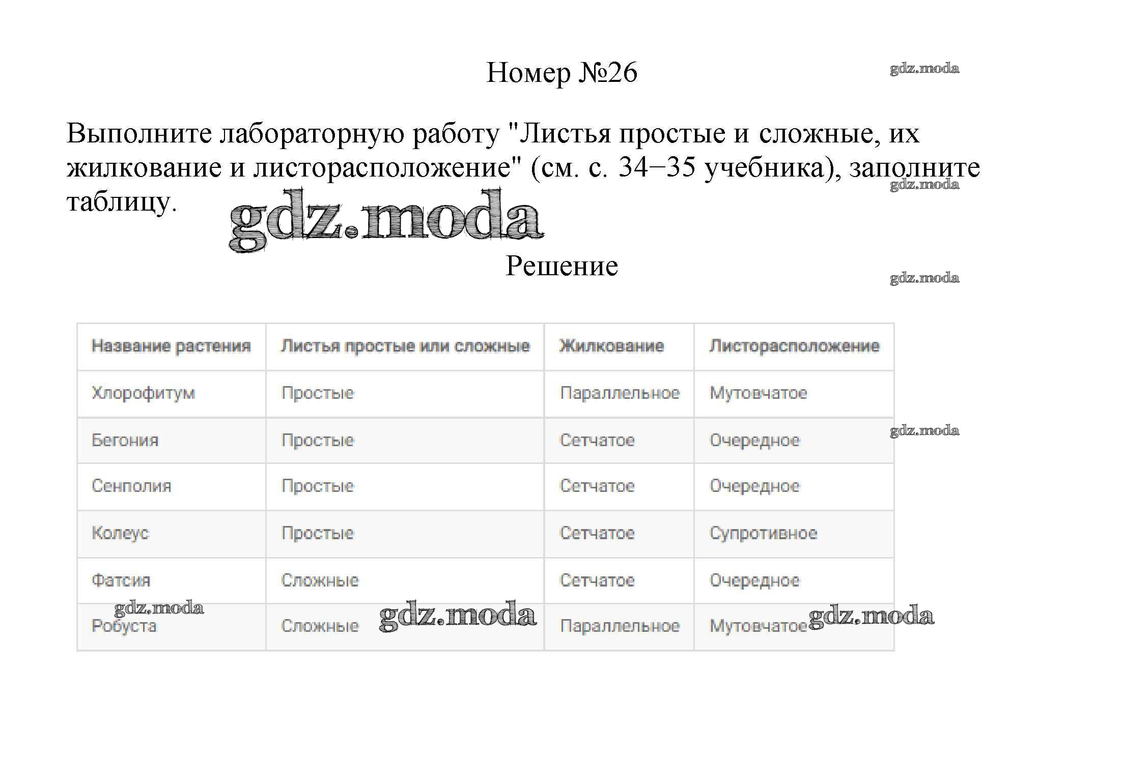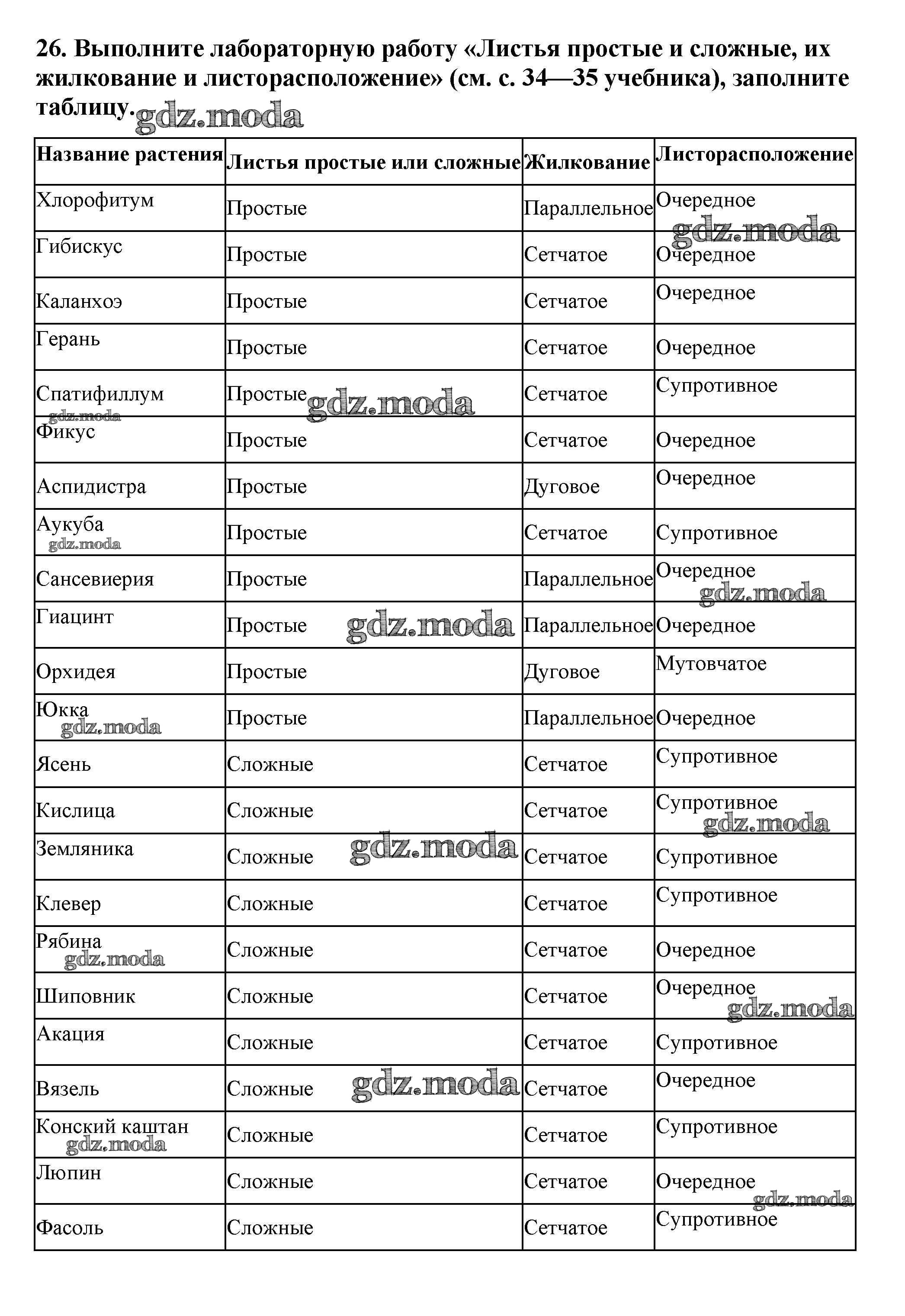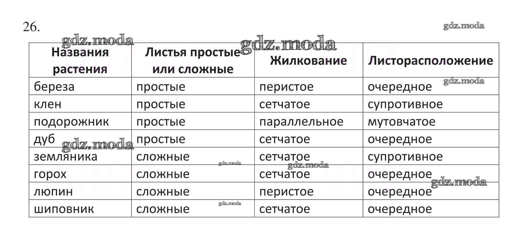 ОТВЕТ на задание № 26 Рабочая тетрадь по Биологии 6 класс Пасечник УМК