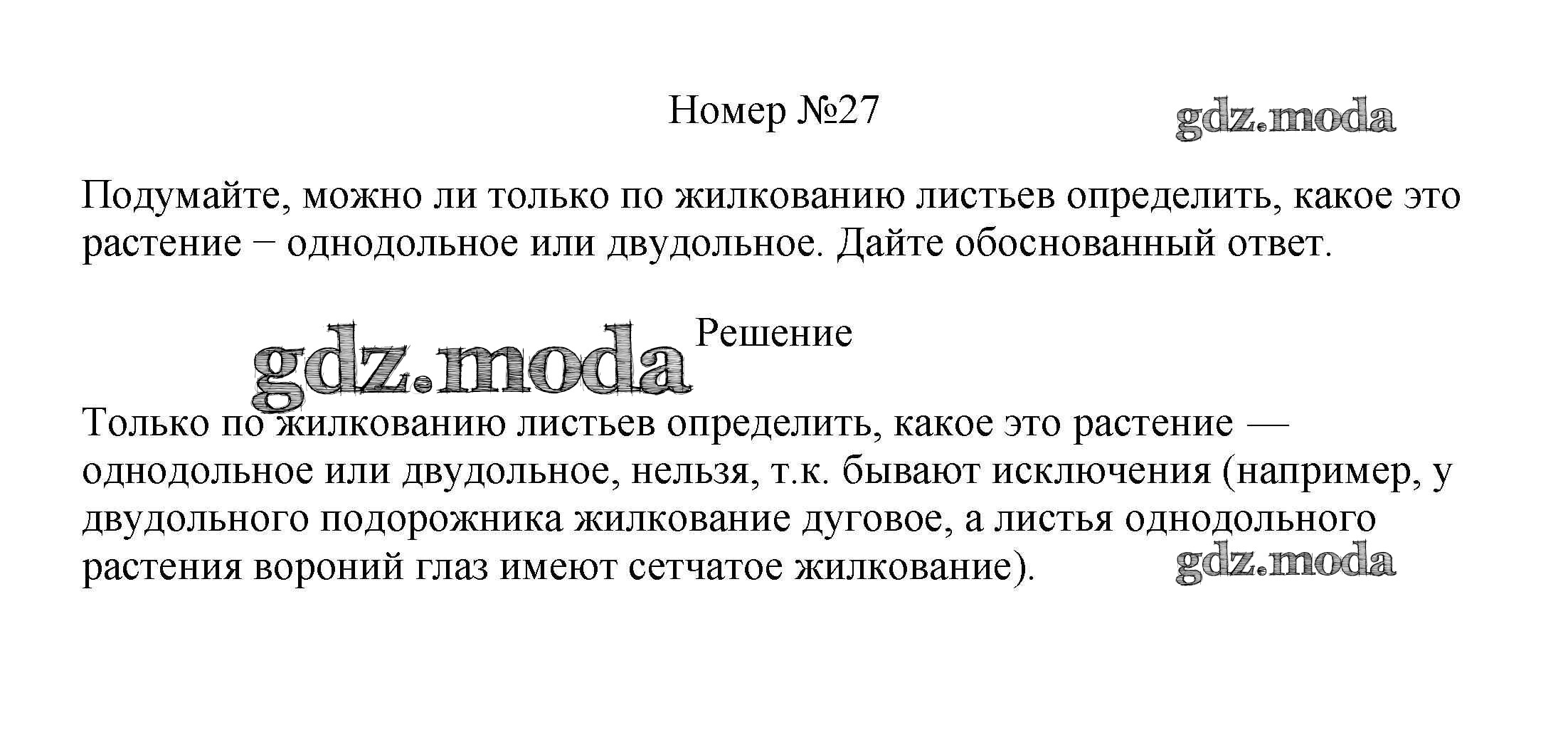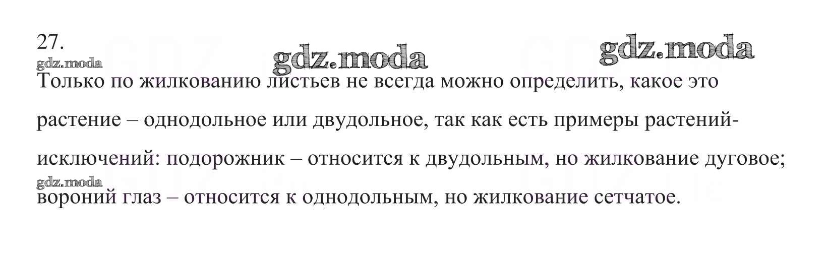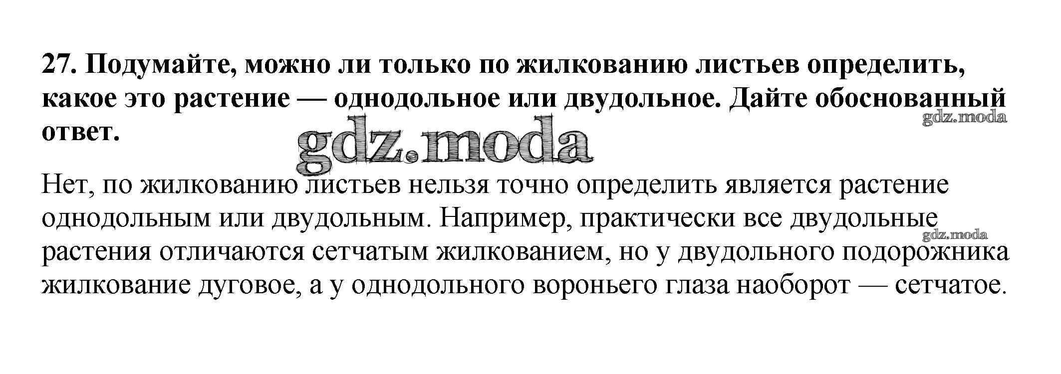 ОТВЕТ на задание № 27 Рабочая тетрадь по Биологии 6 класс Пасечник УМК