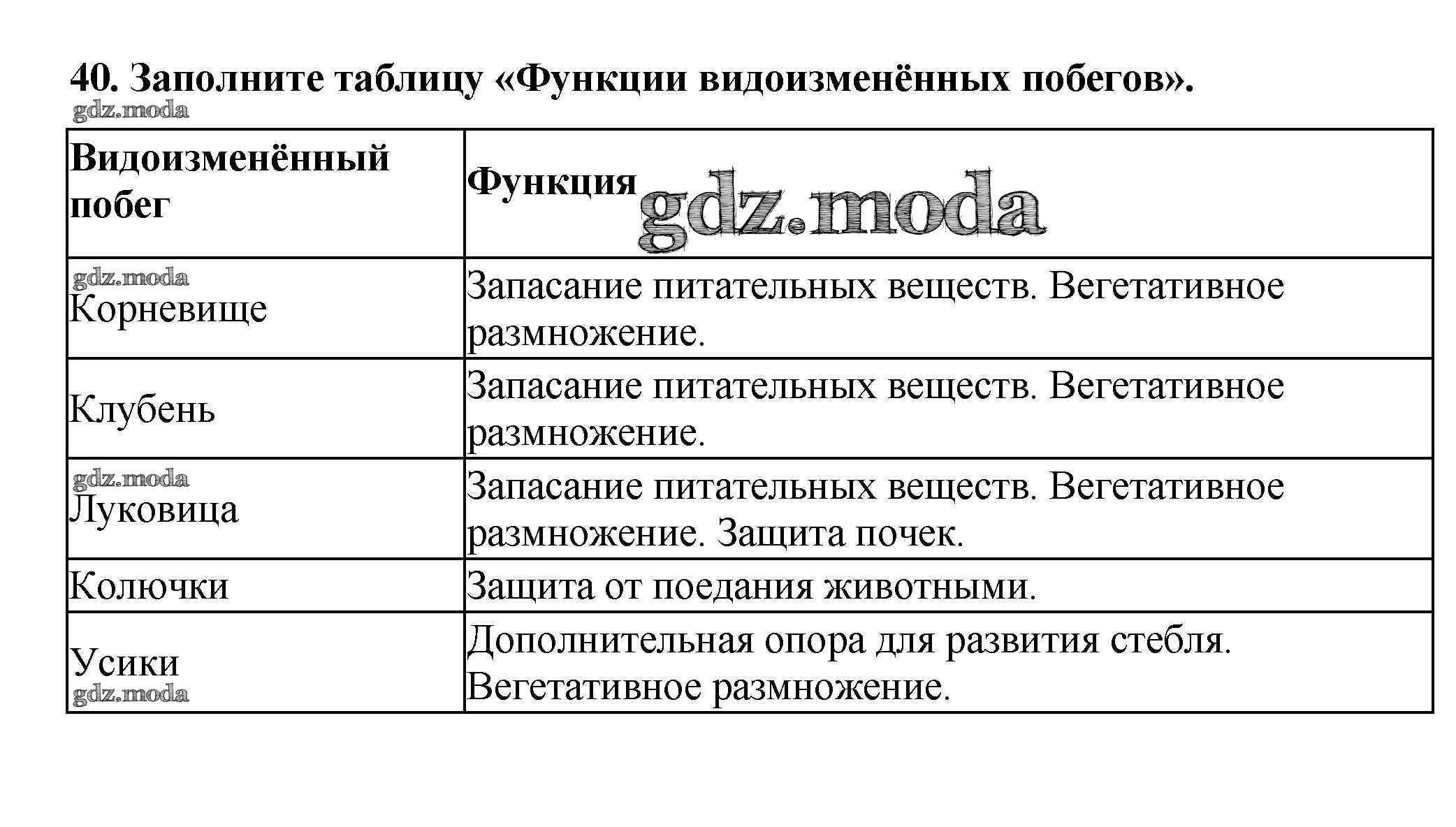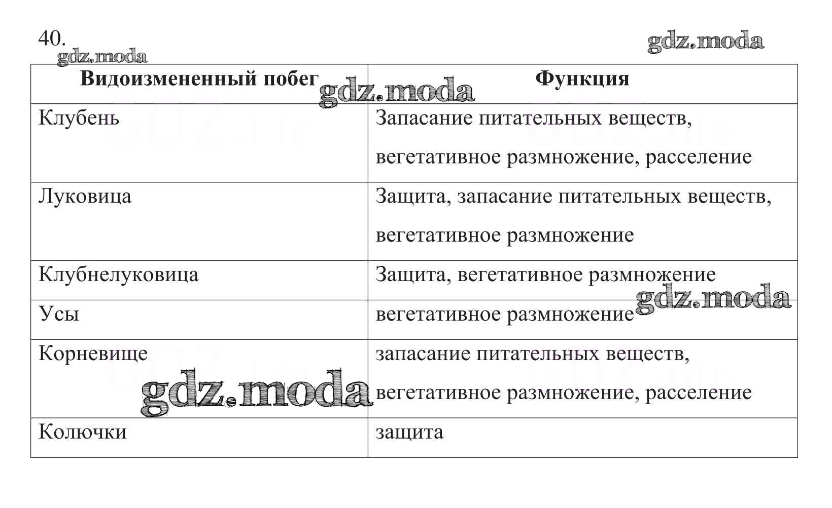 ОТВЕТ на задание № 40 Рабочая тетрадь по Биологии 6 класс Пасечник УМК