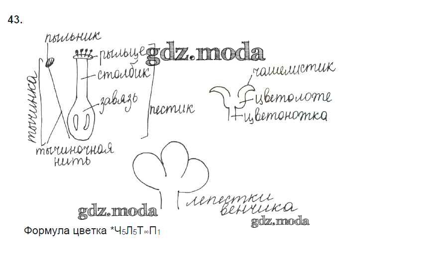 ОТВЕТ на задание № 43 Рабочая тетрадь по Биологии 6 класс Пасечник УМК