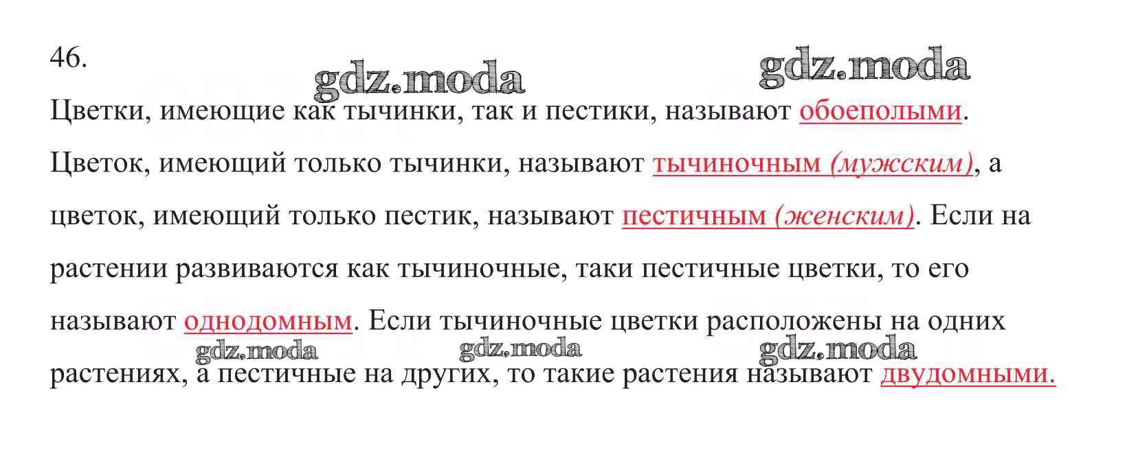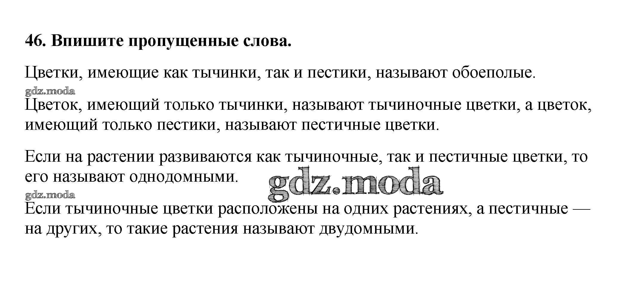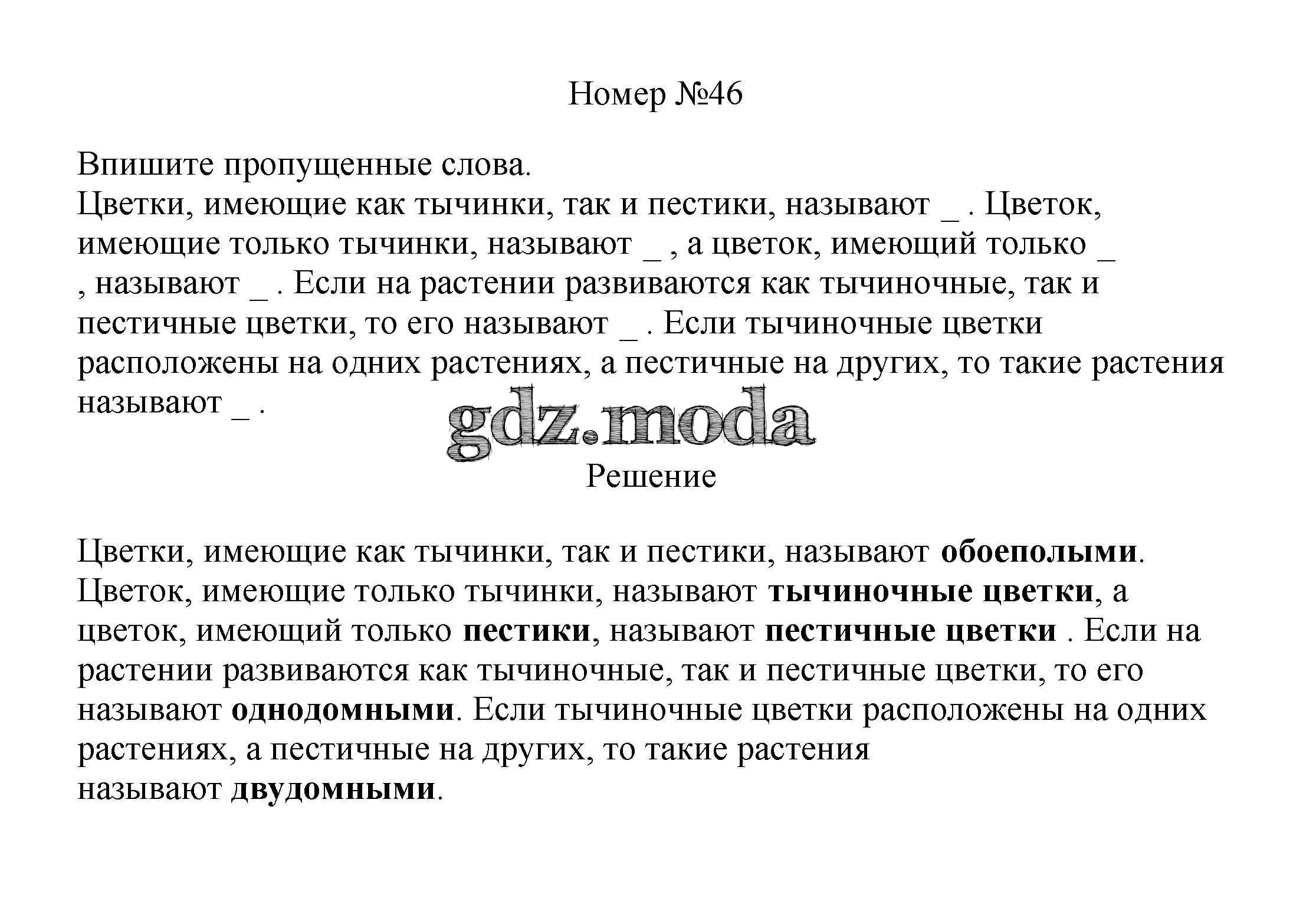 ОТВЕТ на задание № 46 Рабочая тетрадь по Биологии 6 класс Пасечник УМК