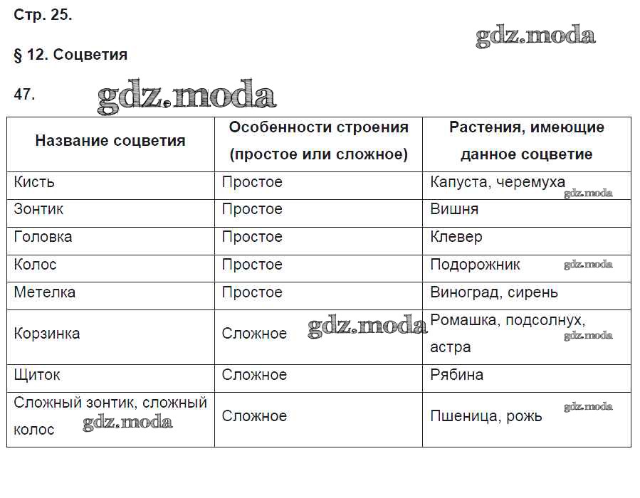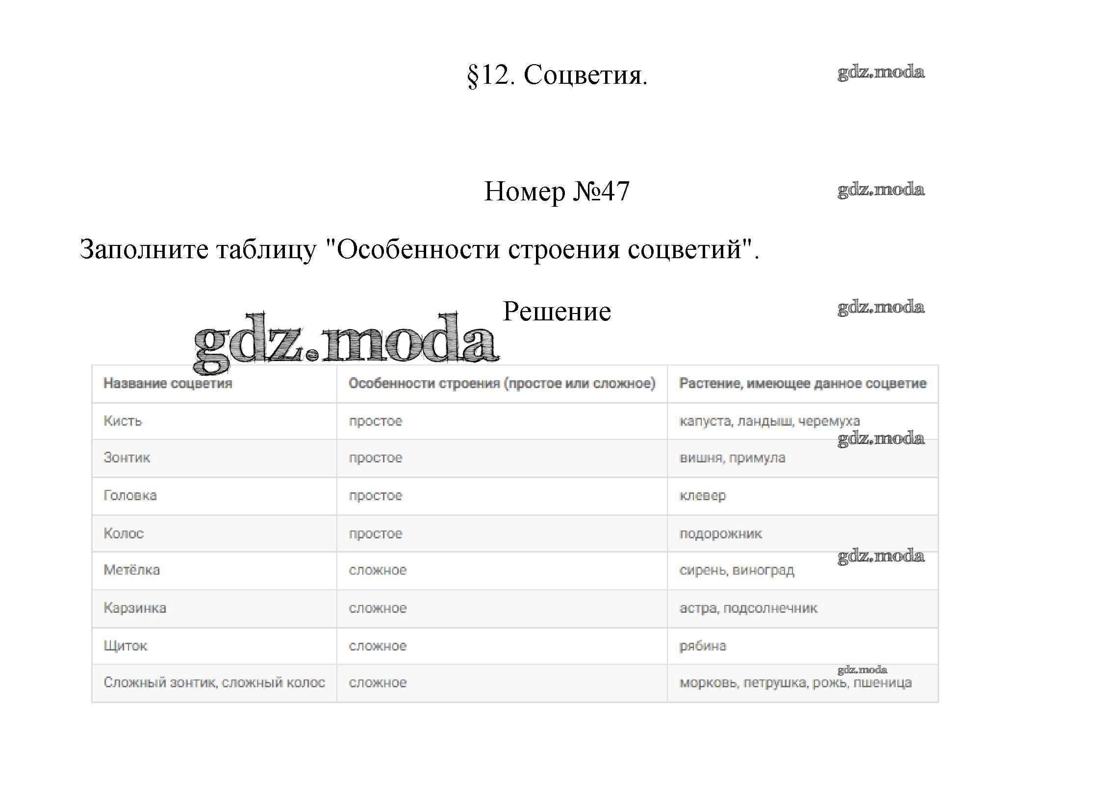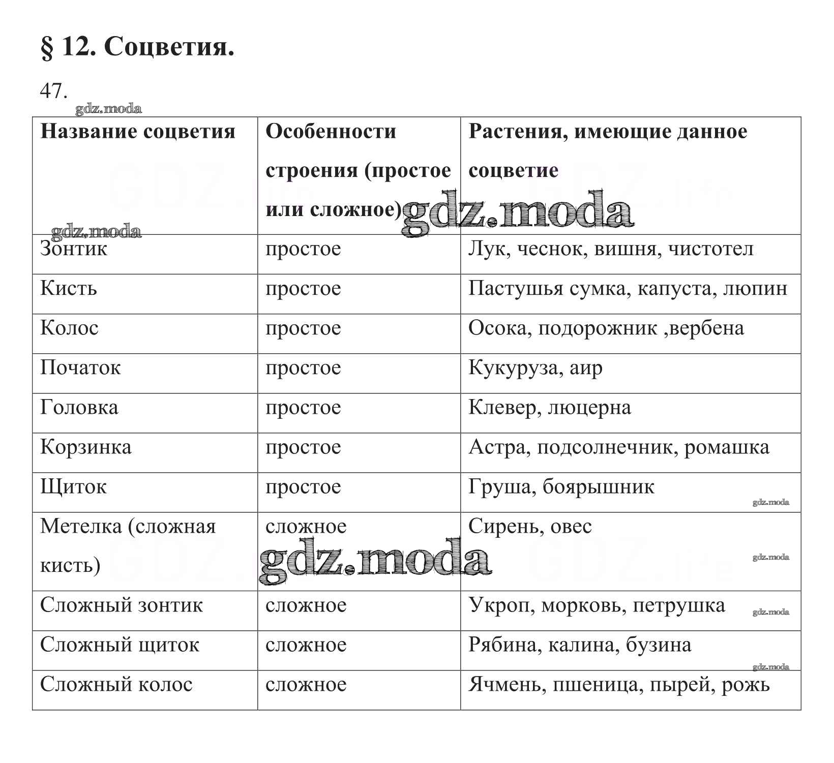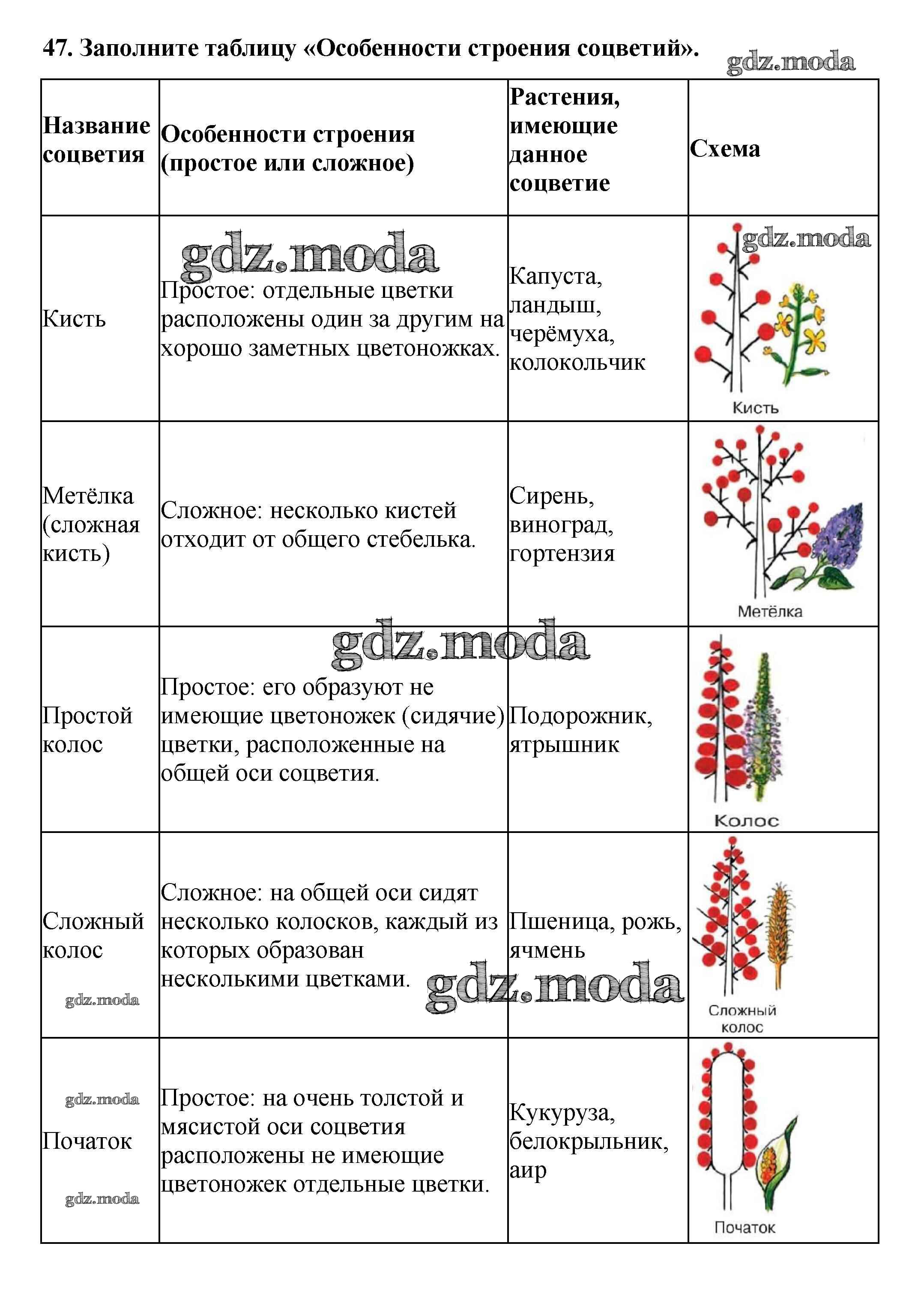ОТВЕТ на задание № 47 Рабочая тетрадь по Биологии 6 класс Пасечник УМК
