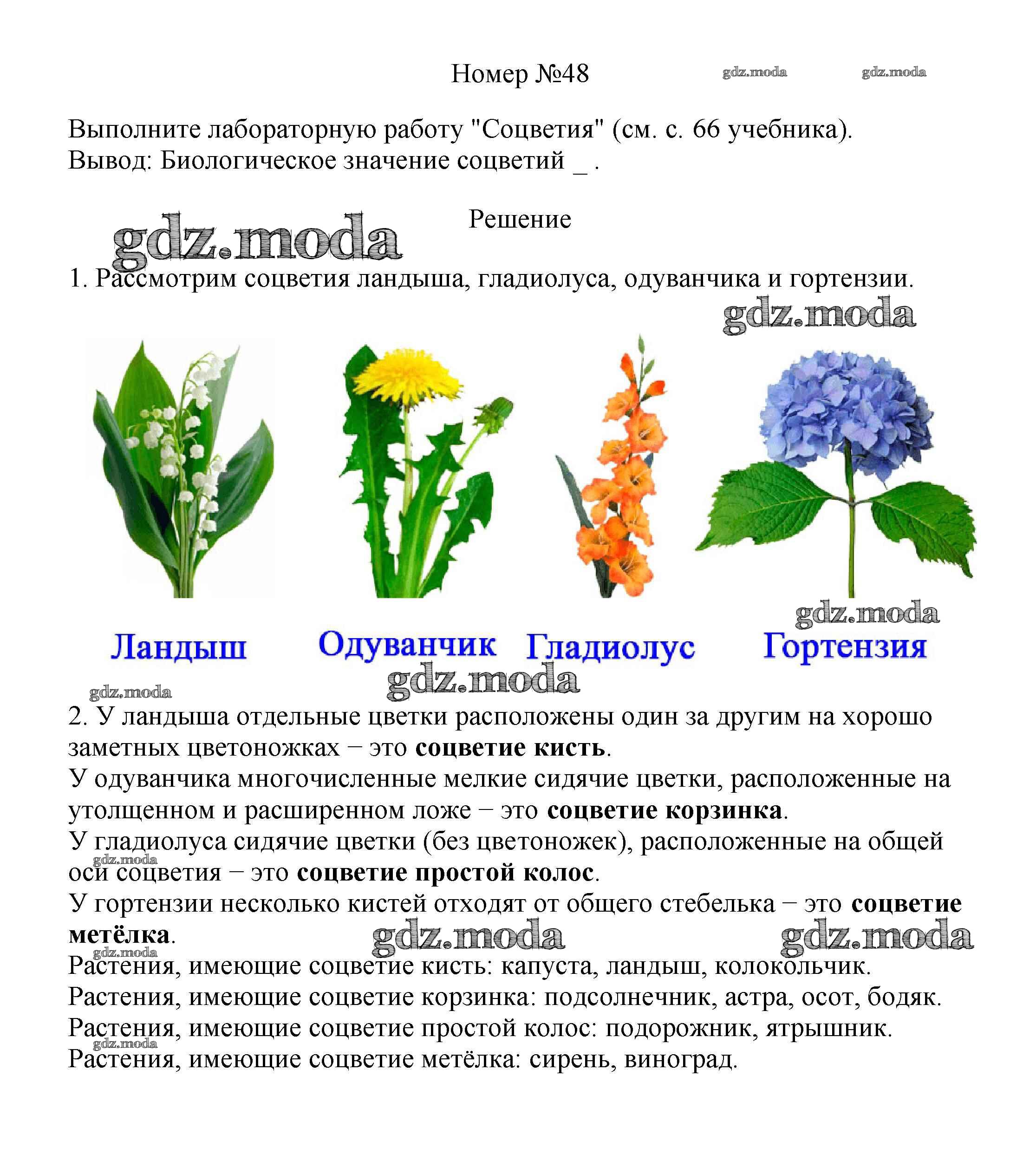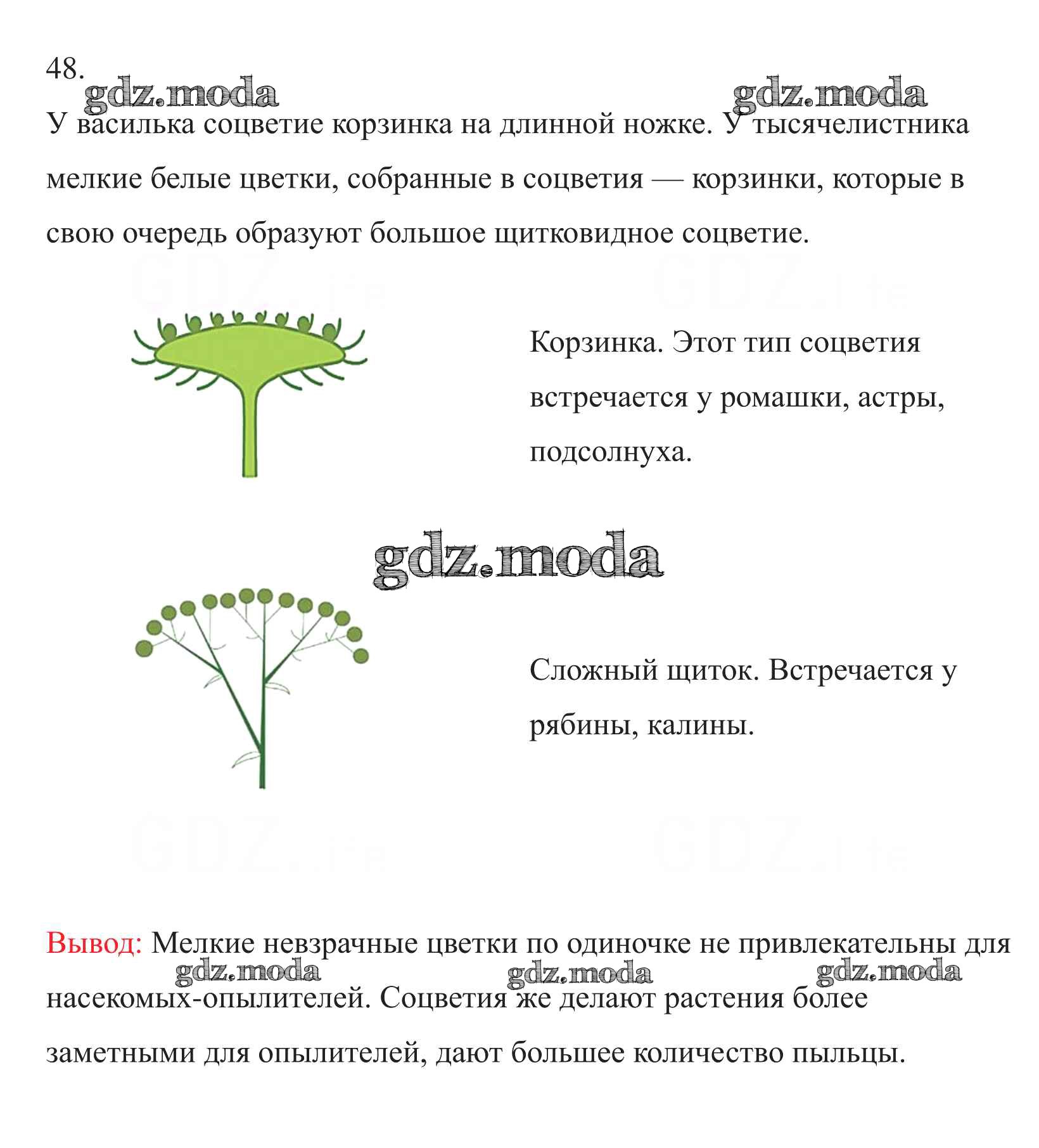 ОТВЕТ на задание № 48 Рабочая тетрадь по Биологии 6 класс Пасечник УМК