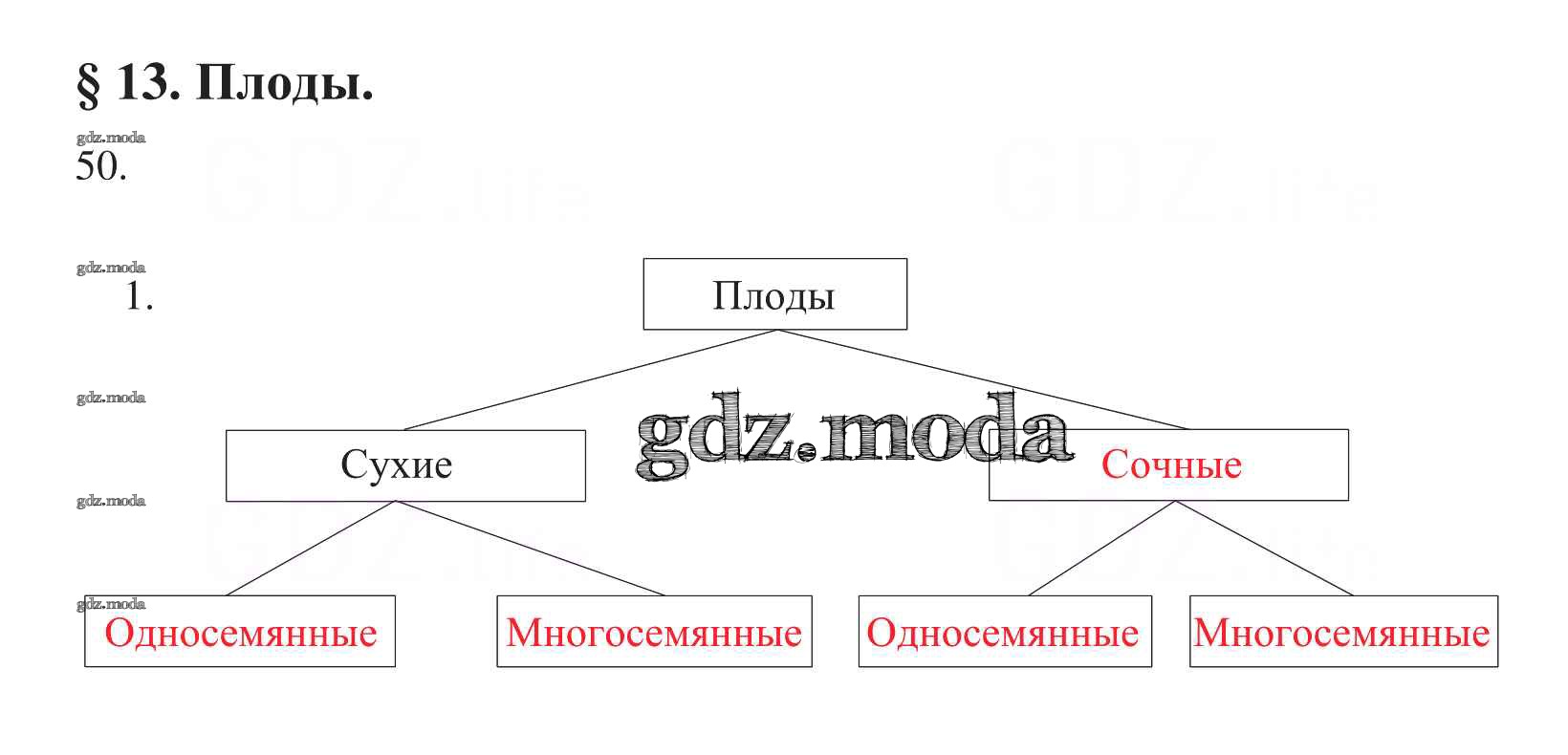 ОТВЕТ на задание № 50 Рабочая тетрадь по Биологии 6 класс Пасечник УМК