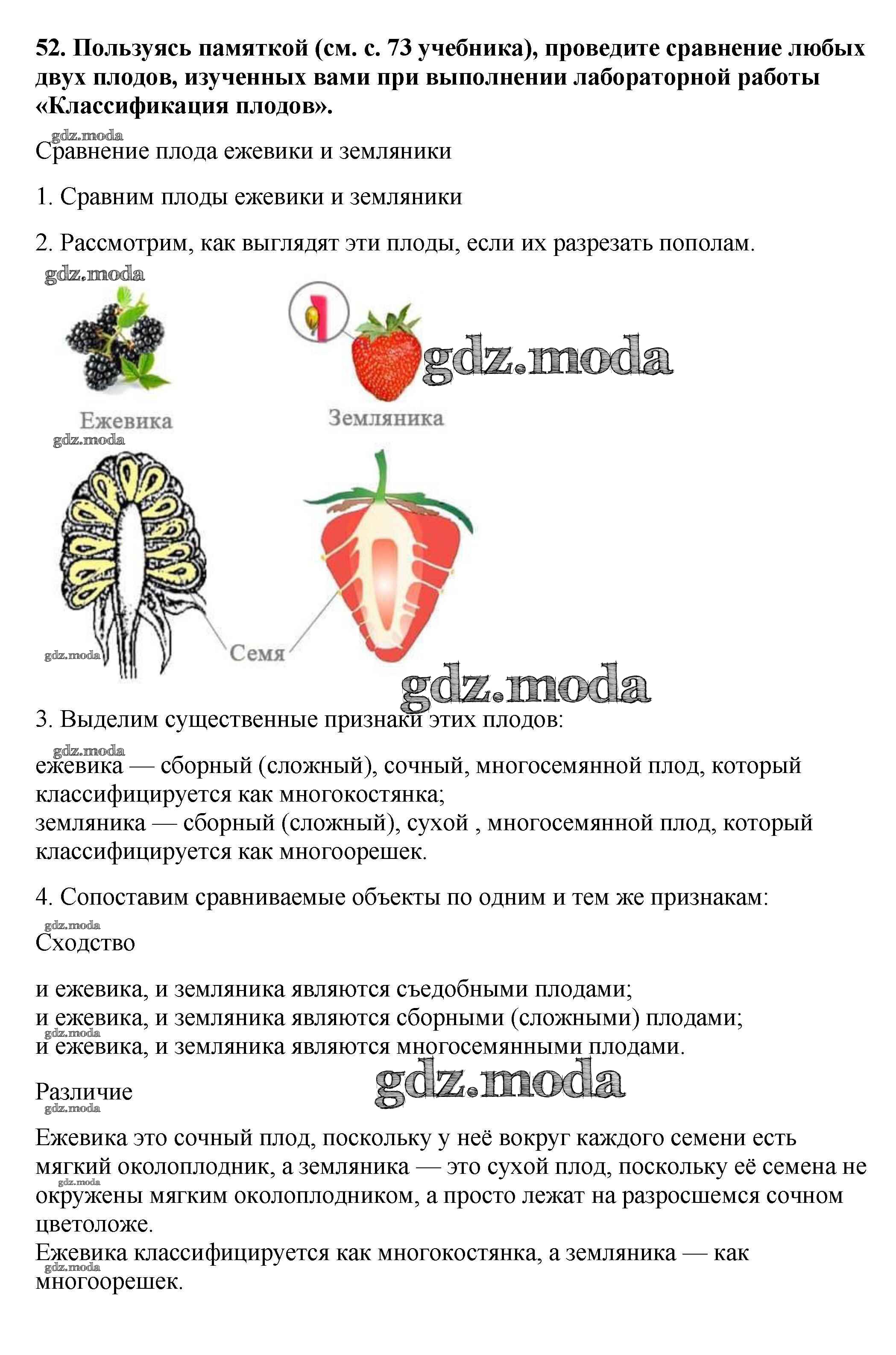 ОТВЕТ на задание № 52 Рабочая тетрадь по Биологии 6 класс Пасечник УМК