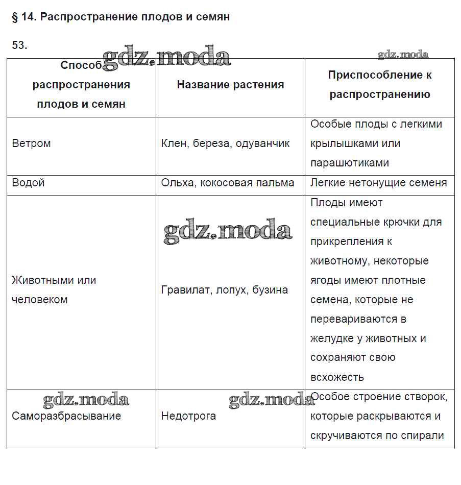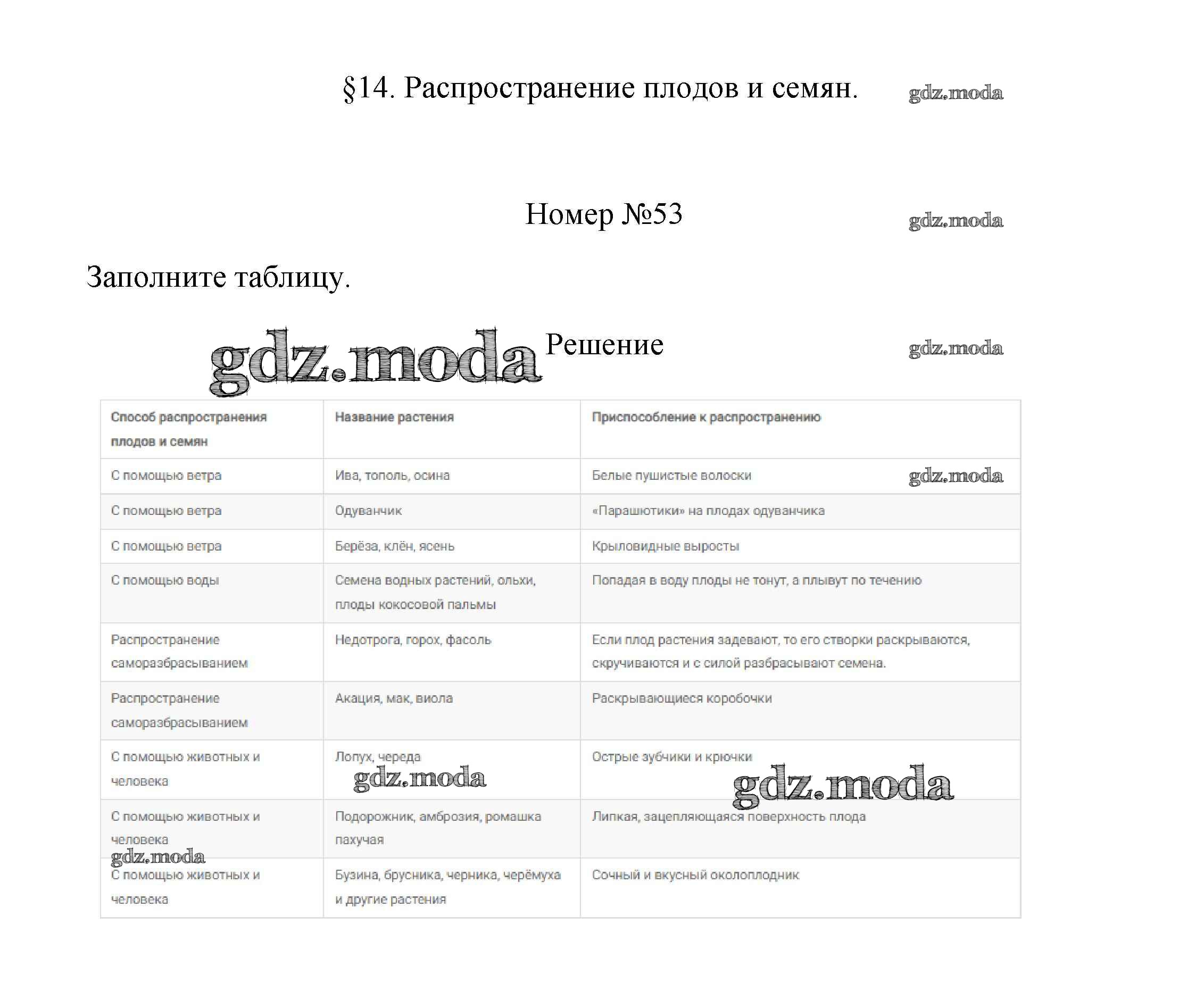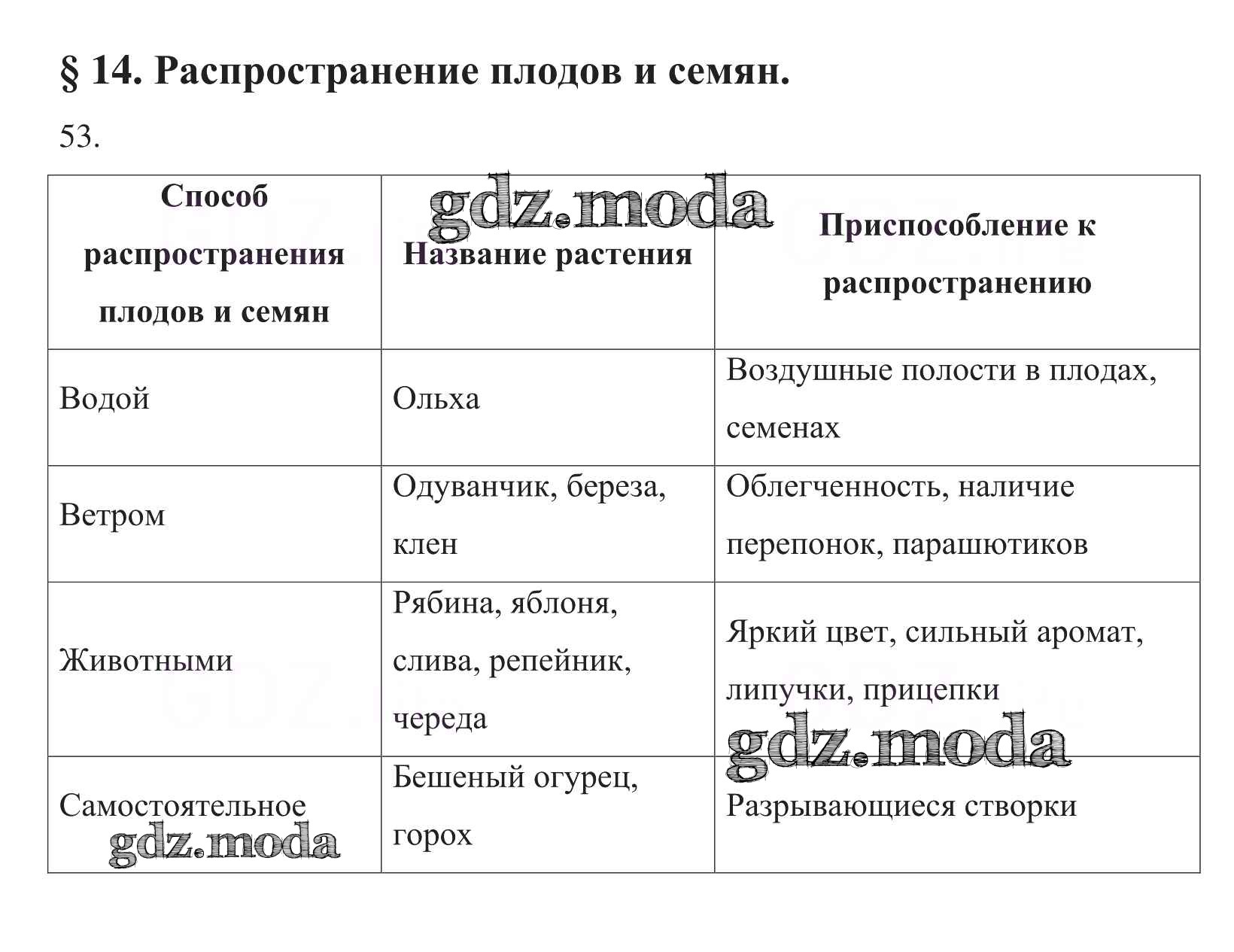 ОТВЕТ на задание № 53 Рабочая тетрадь по Биологии 6 класс Пасечник УМК