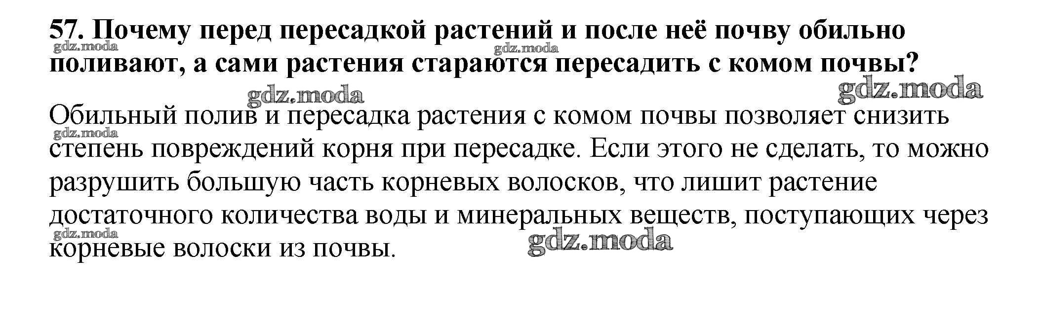 ОТВЕТ на задание № 57 Рабочая тетрадь по Биологии 6 класс Пасечник УМК