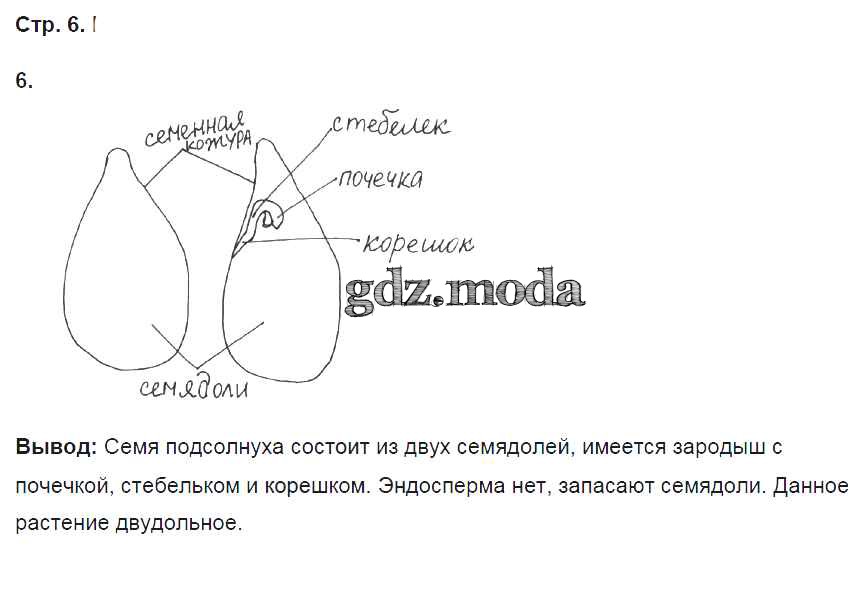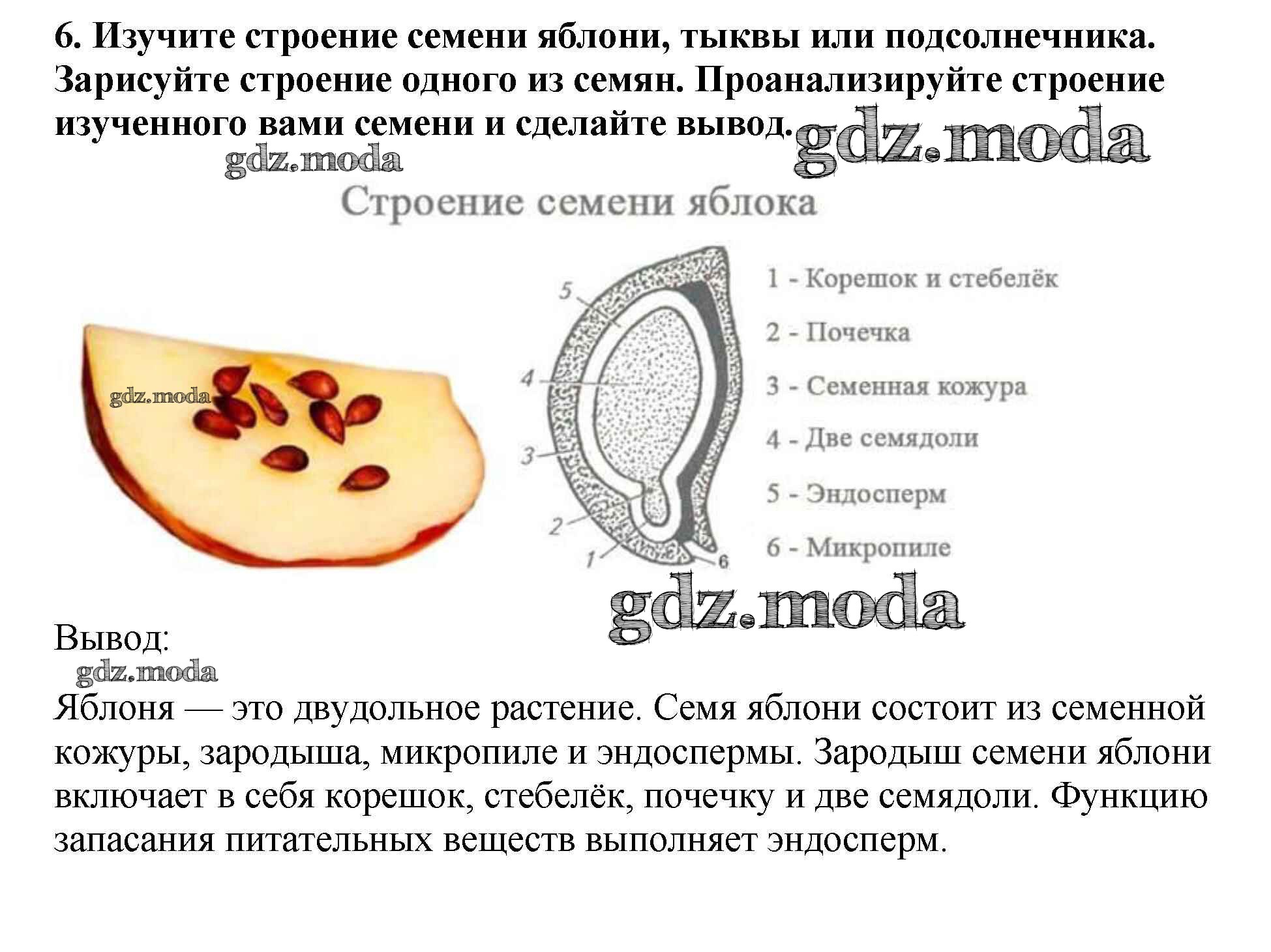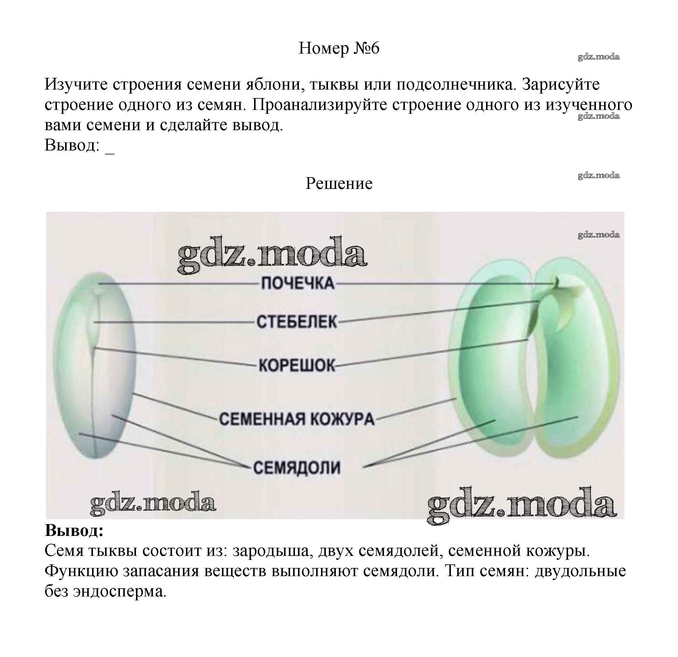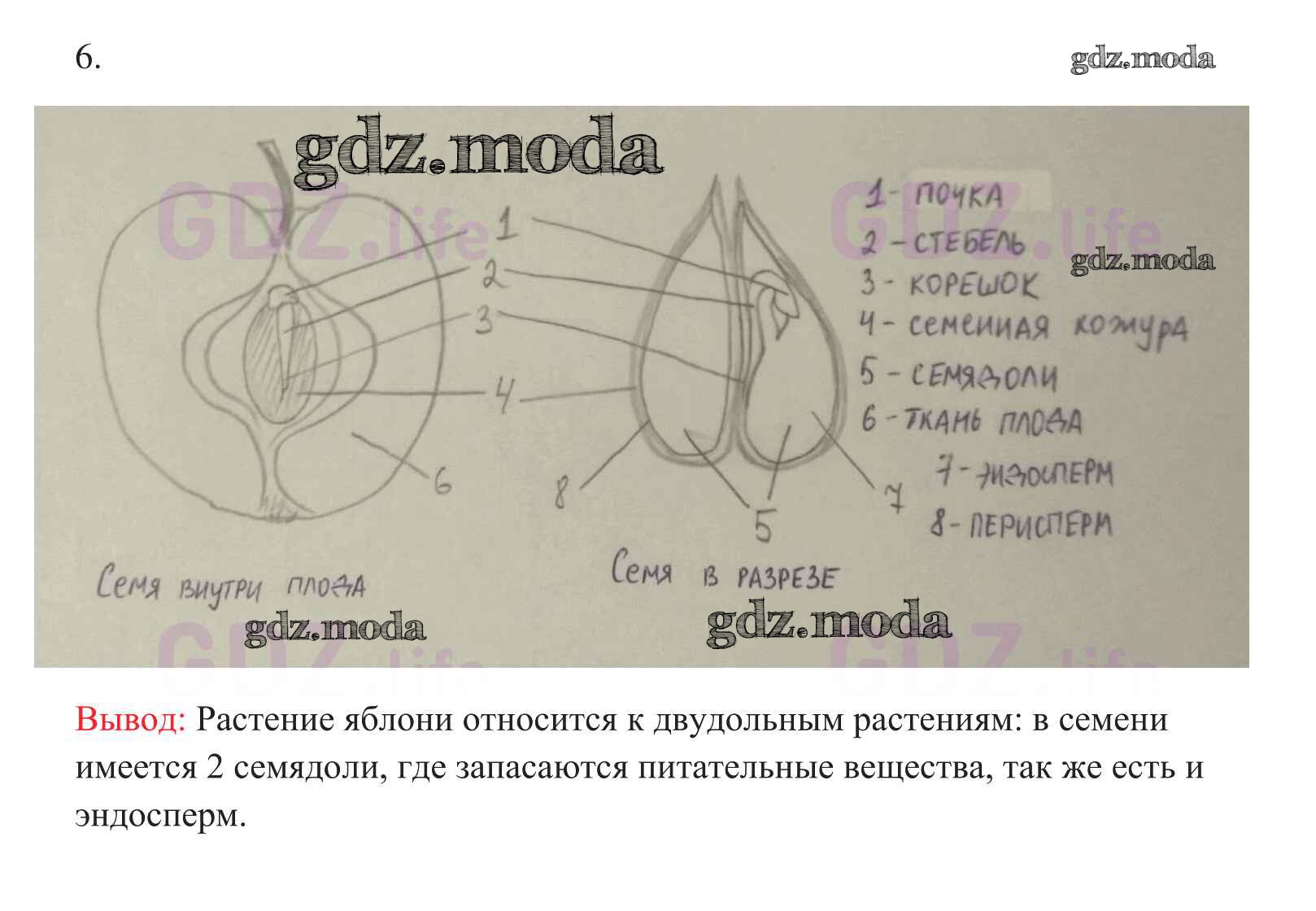 ОТВЕТ на задание № 6 Рабочая тетрадь по Биологии 6 класс Пасечник УМК