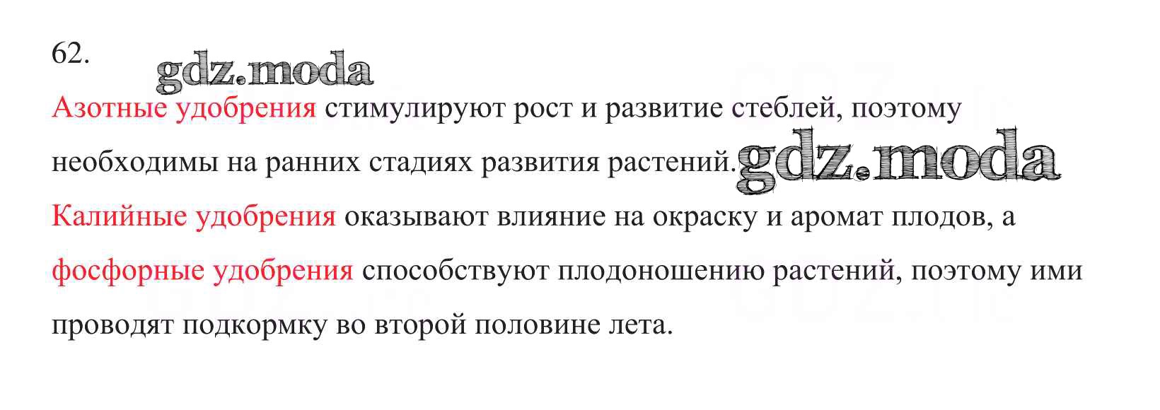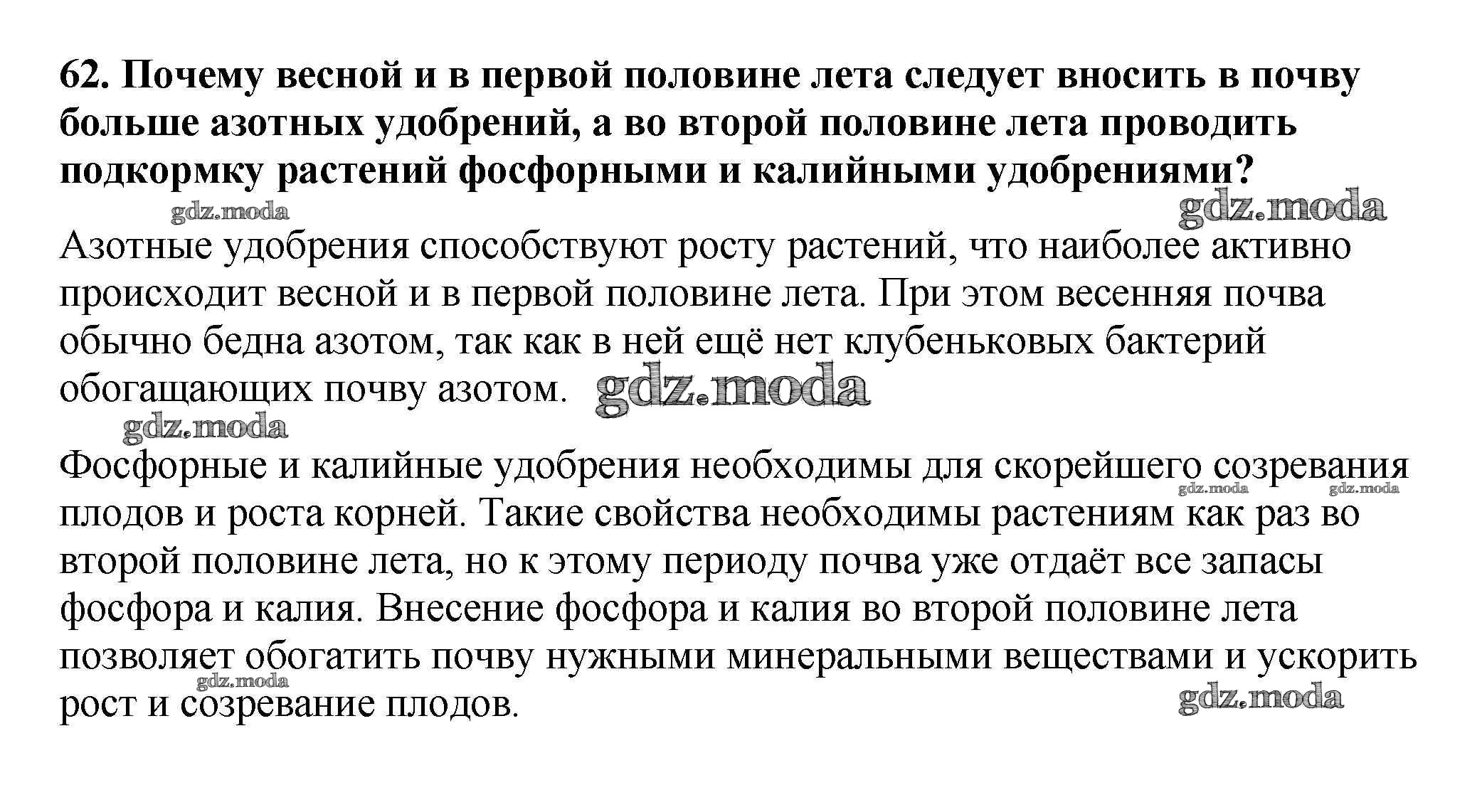 ОТВЕТ на задание № 62 Рабочая тетрадь по Биологии 6 класс Пасечник УМК