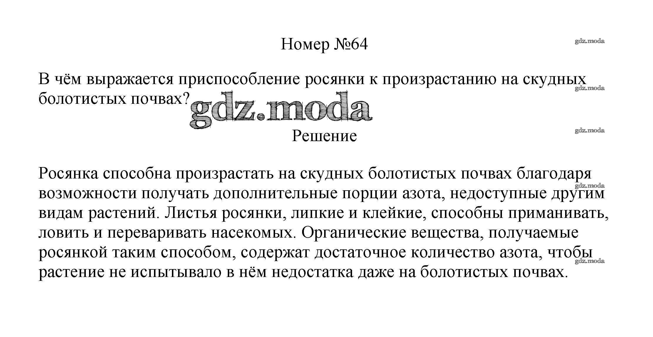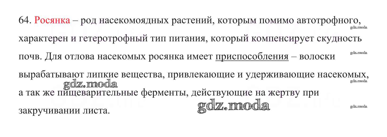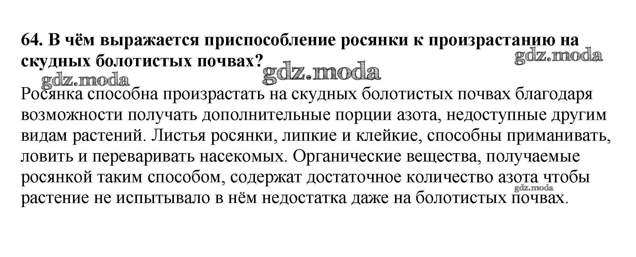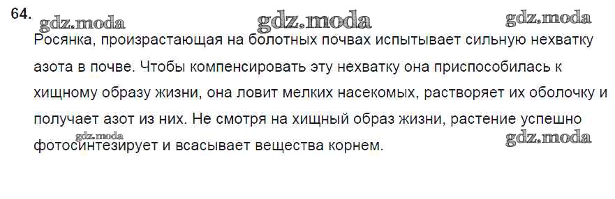 ОТВЕТ на задание № 64 Рабочая тетрадь по Биологии 6 класс Пасечник УМК