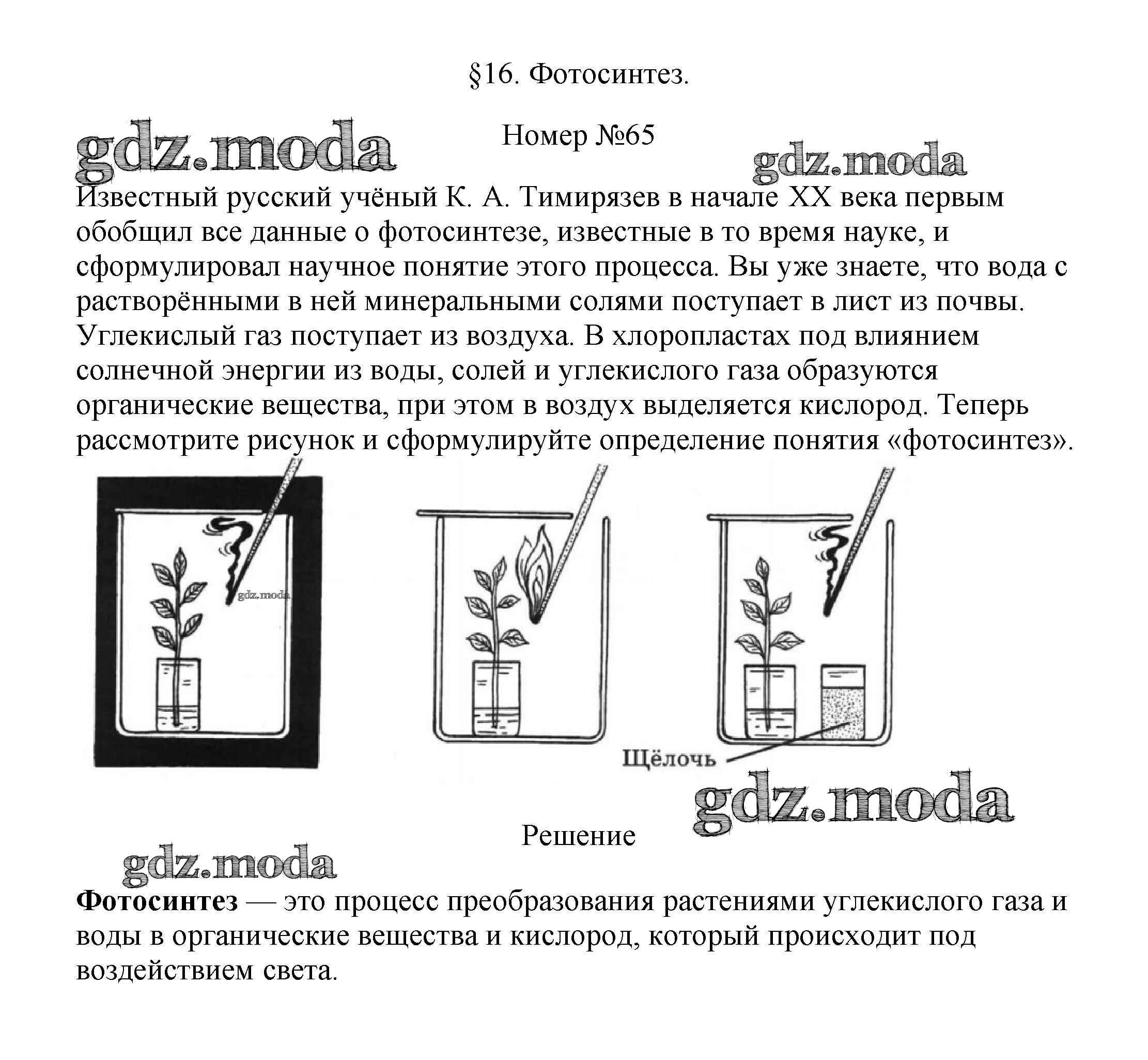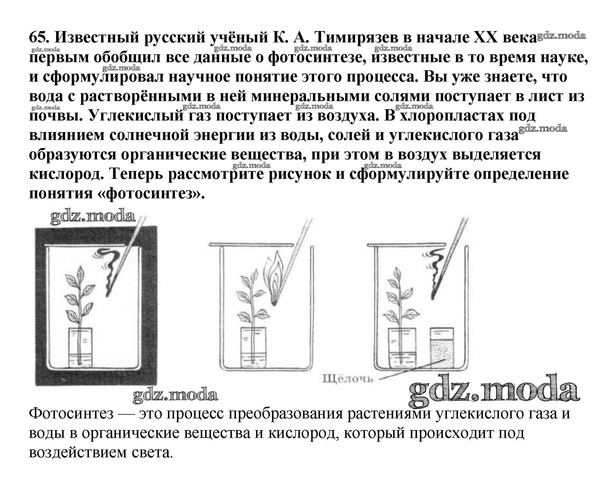 ОТВЕТ на задание № 65 Рабочая тетрадь по Биологии 6 класс Пасечник УМК