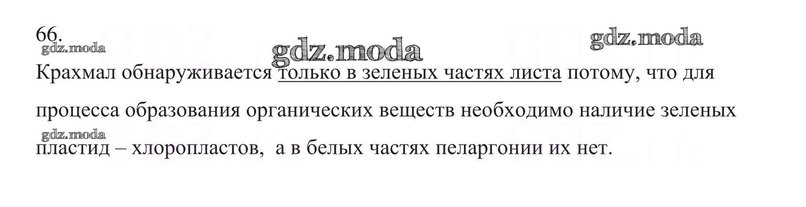 ОТВЕТ на задание № 66 Рабочая тетрадь по Биологии 6 класс Пасечник УМК