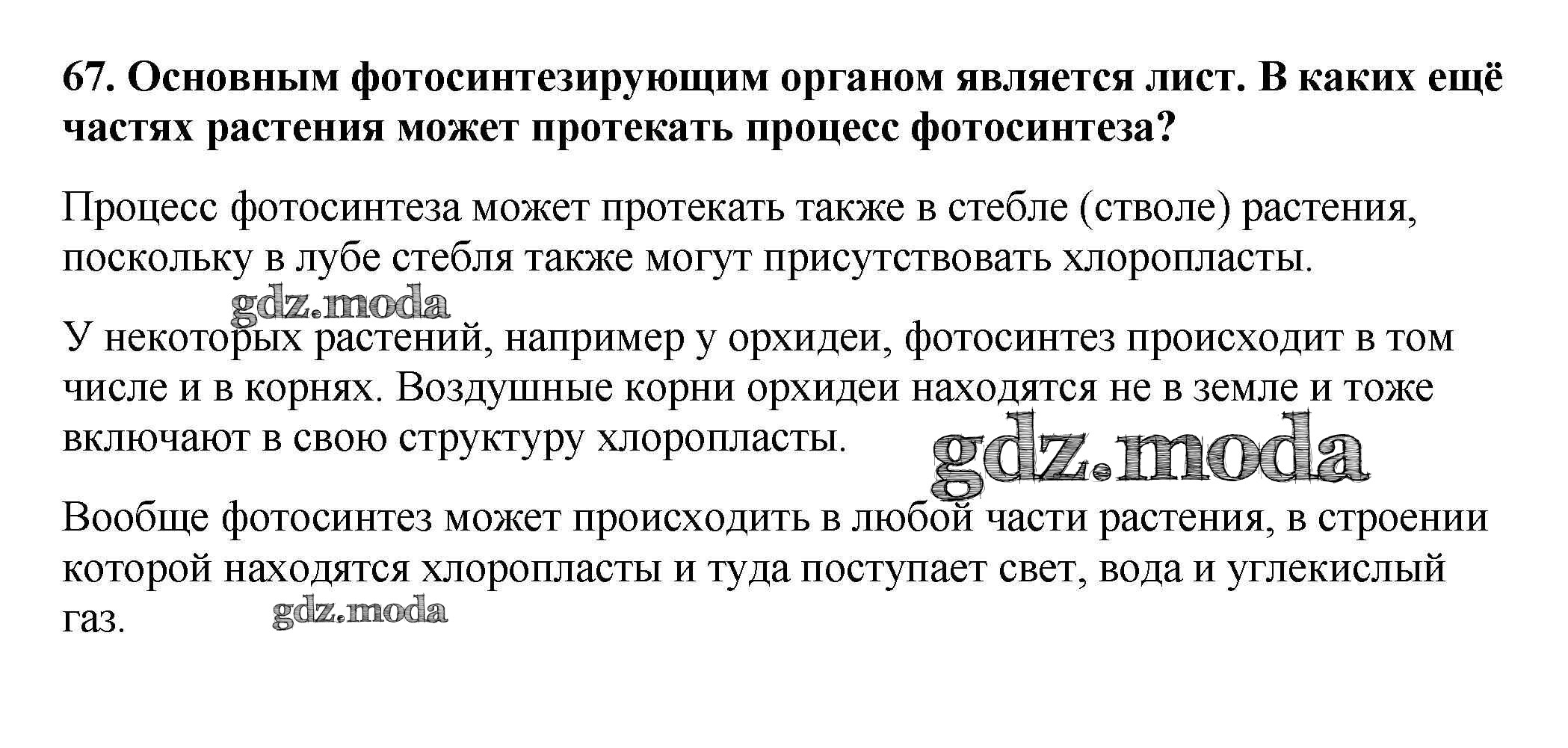 ОТВЕТ на задание № 67 Рабочая тетрадь по Биологии 6 класс Пасечник УМК