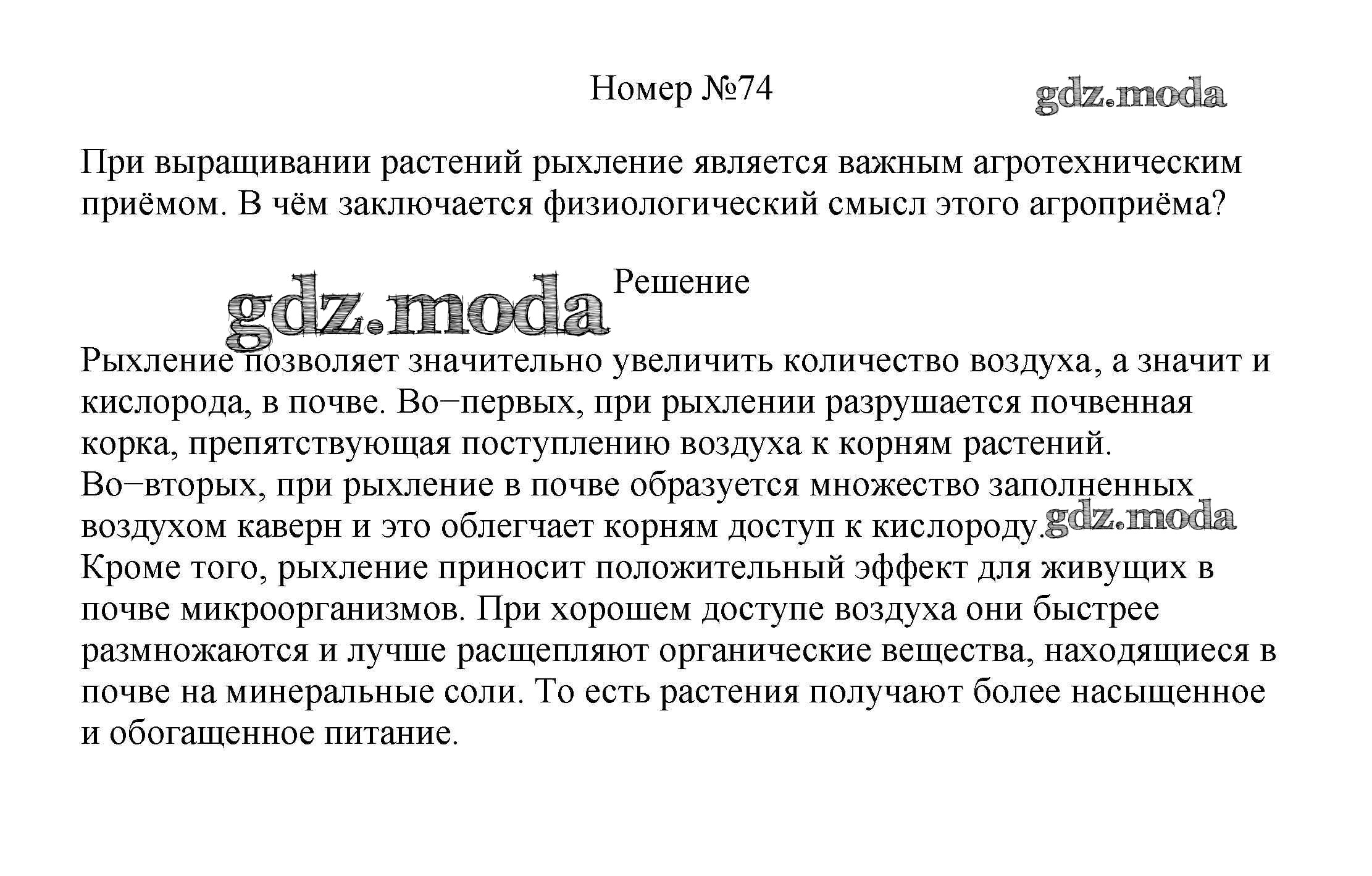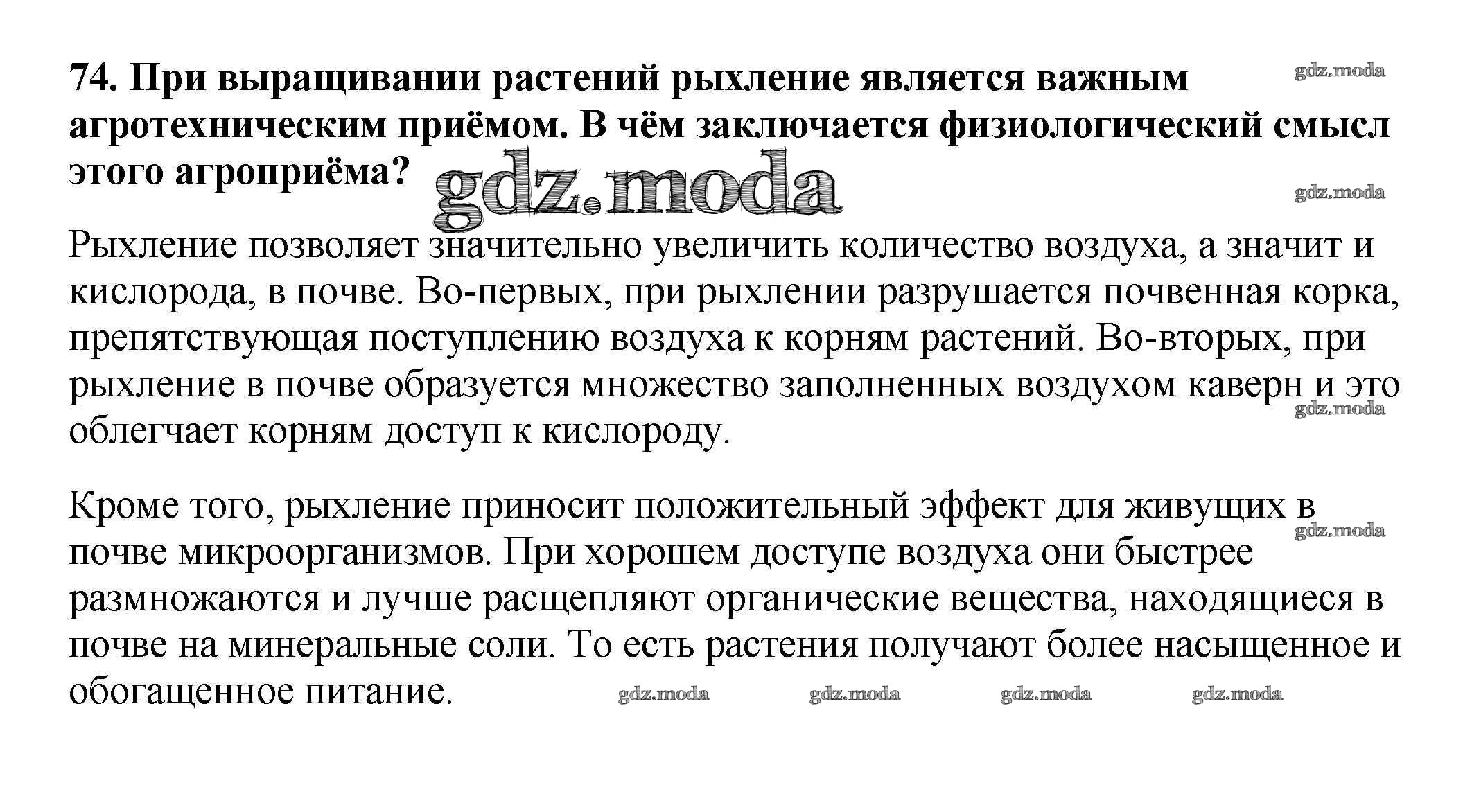 ОТВЕТ на задание № 74 Рабочая тетрадь по Биологии 6 класс Пасечник УМК