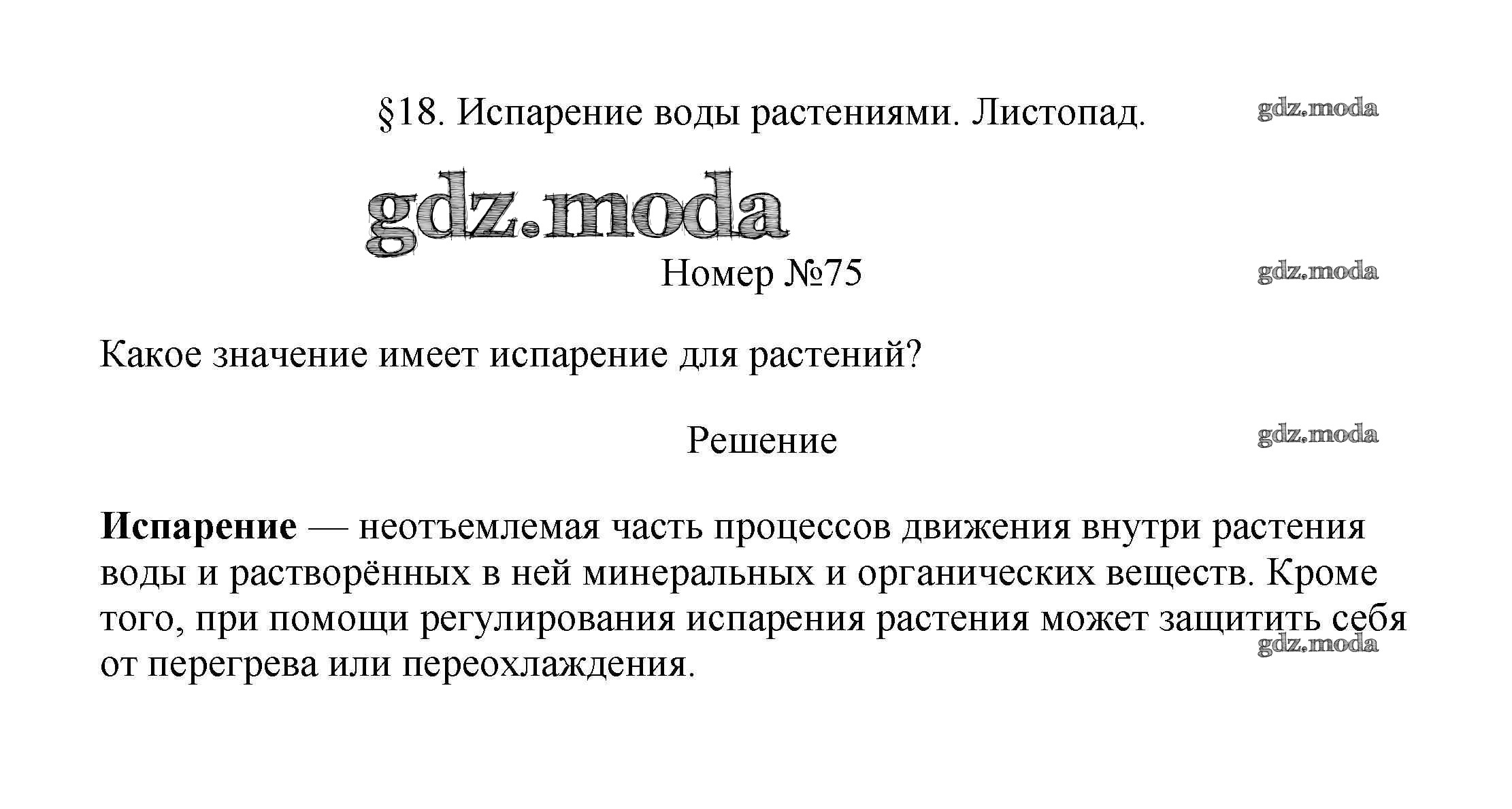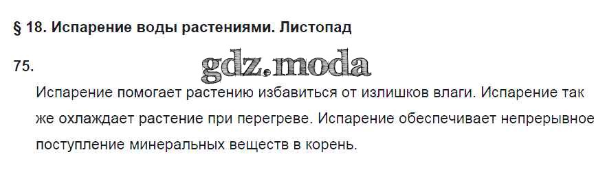 ОТВЕТ на задание № 75 Рабочая тетрадь по Биологии 6 класс Пасечник УМК