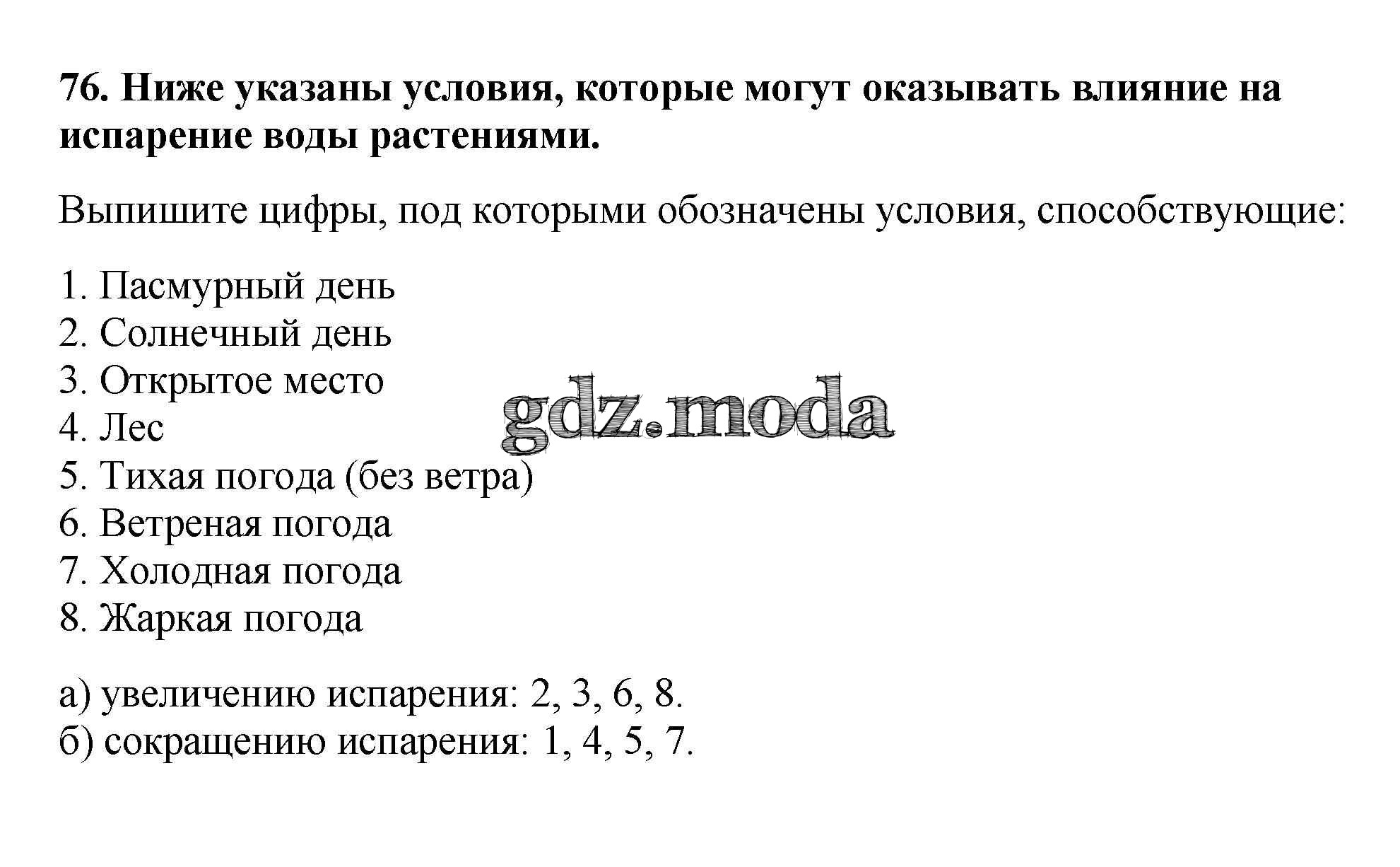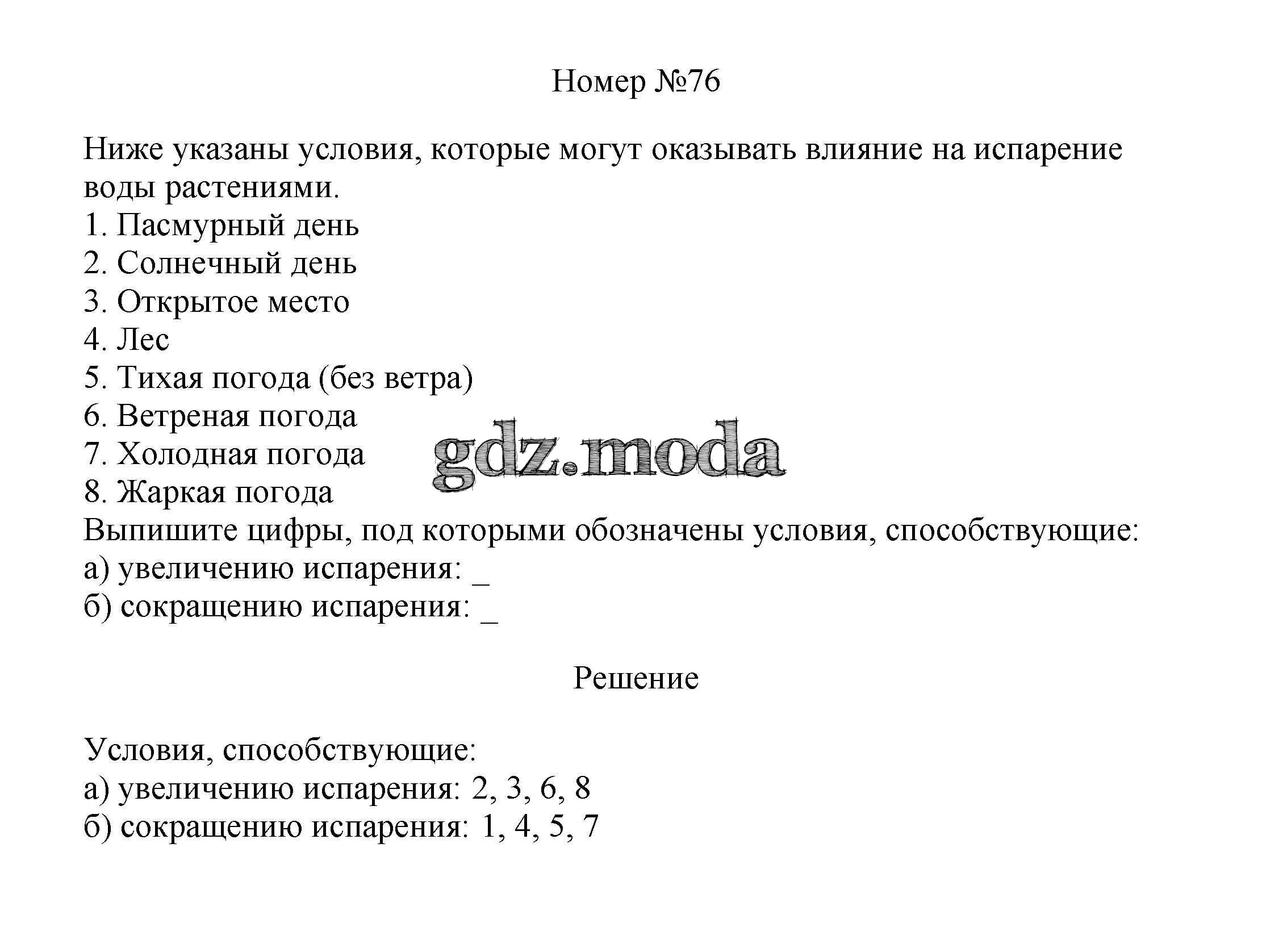 ОТВЕТ на задание № 76 Рабочая тетрадь по Биологии 6 класс Пасечник УМК