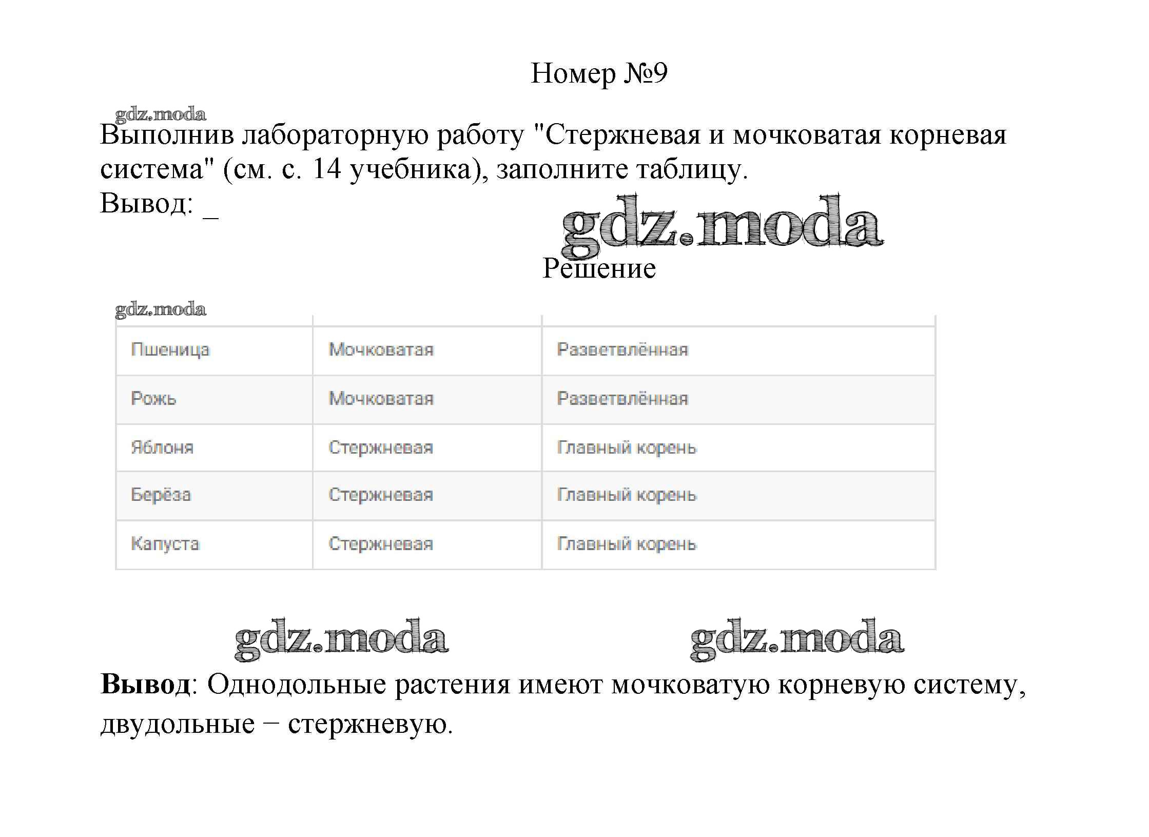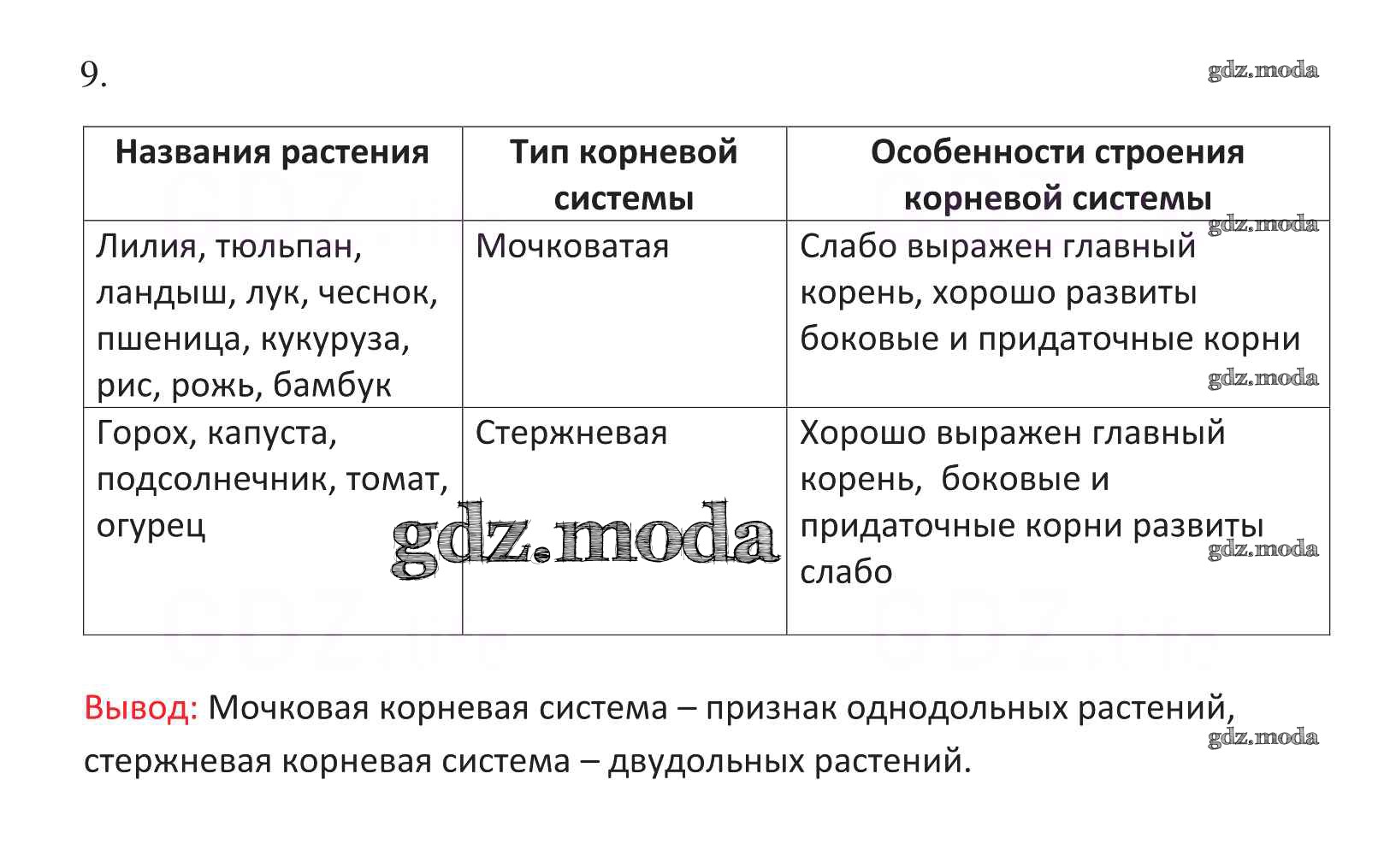 ОТВЕТ на задание № 9 Рабочая тетрадь по Биологии 6 класс Пасечник УМК