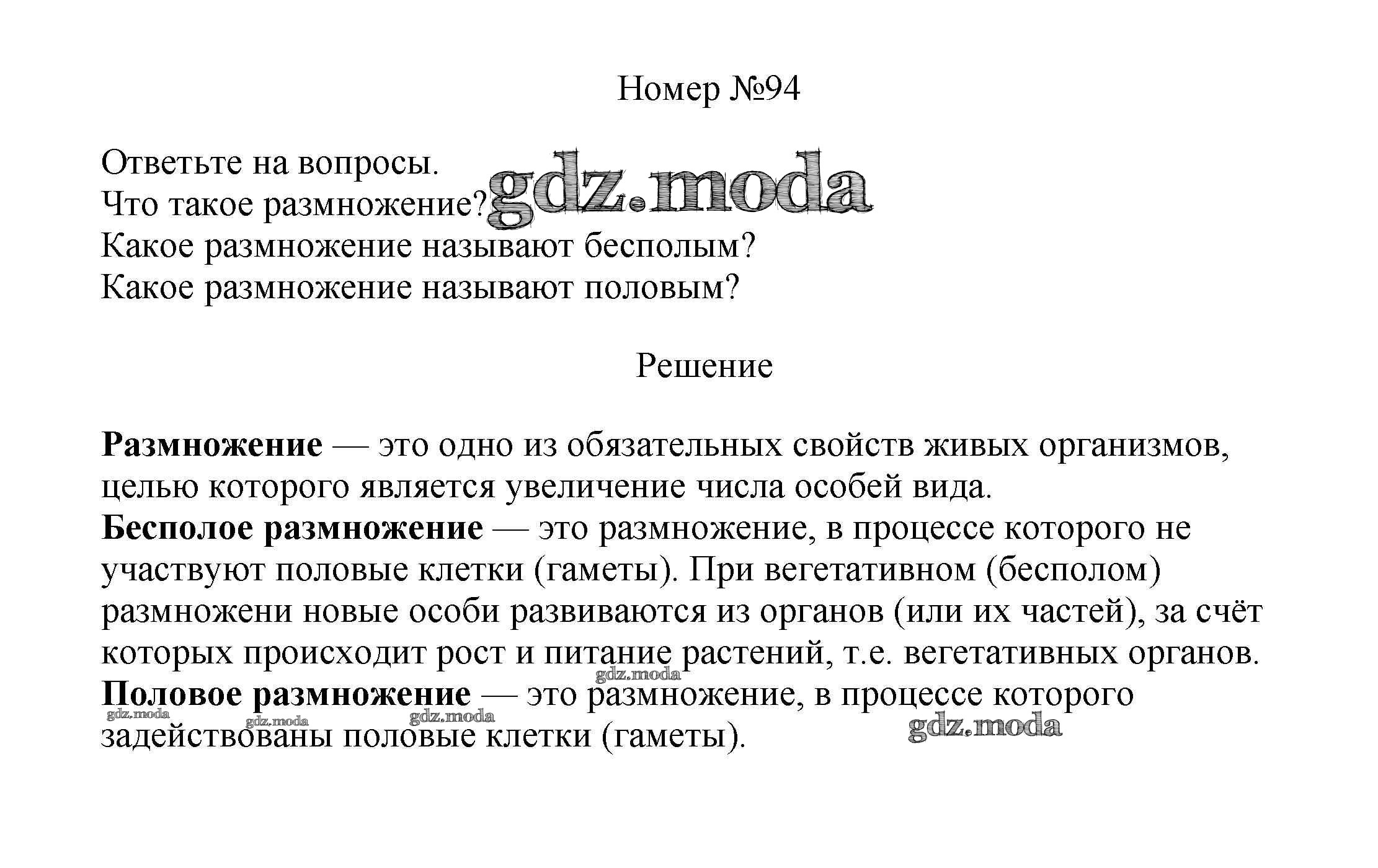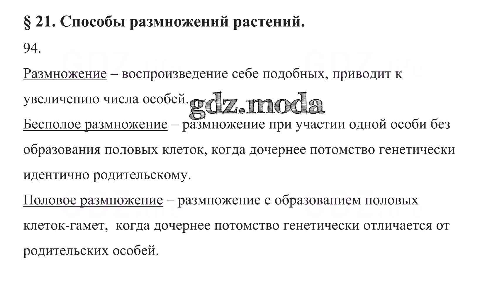 ОТВЕТ на задание № 94 Рабочая тетрадь по Биологии 6 класс Пасечник УМК