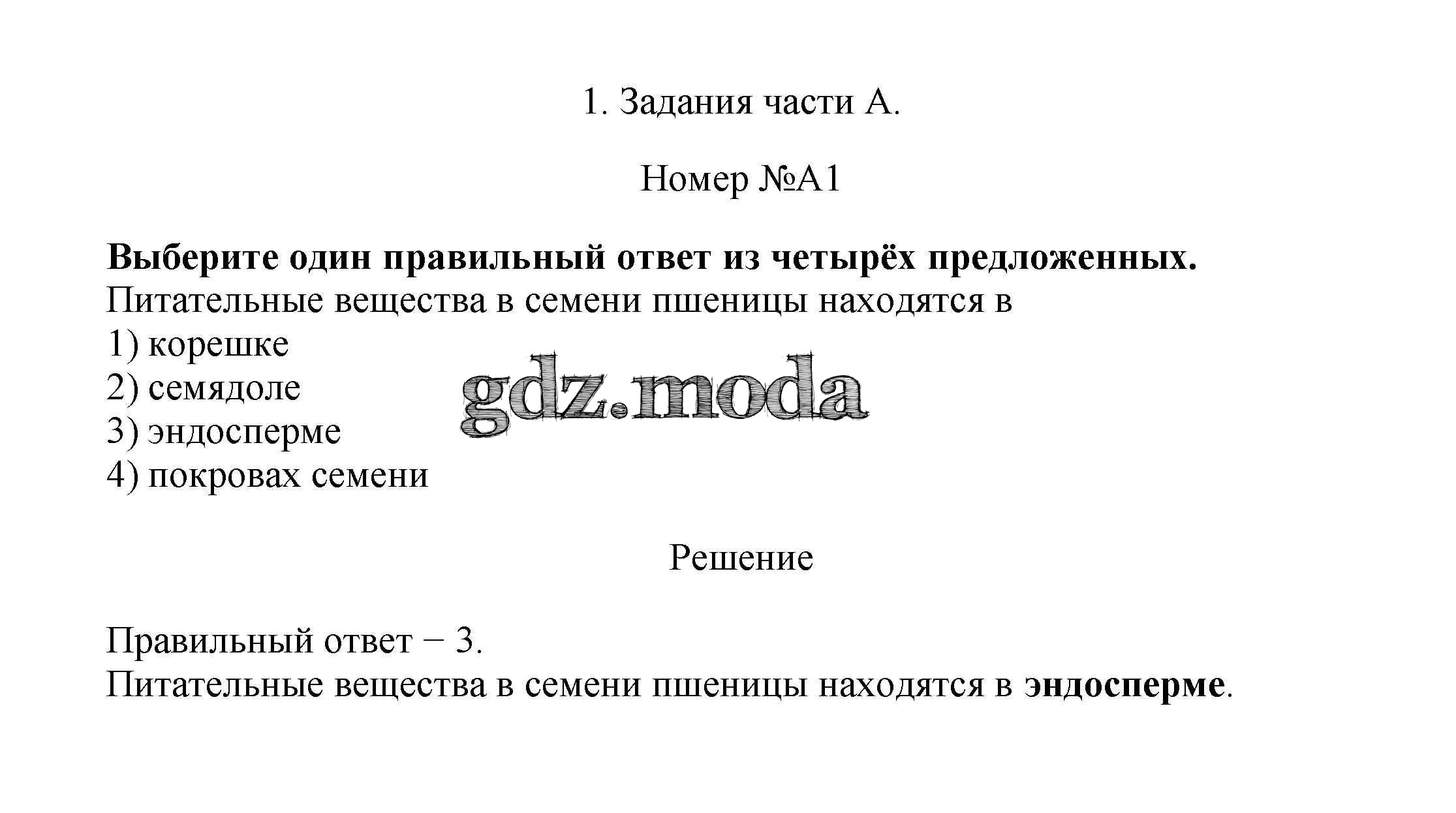 тренировочные задания / строение и многообразие покрытосеменных растений / задания части A / 1