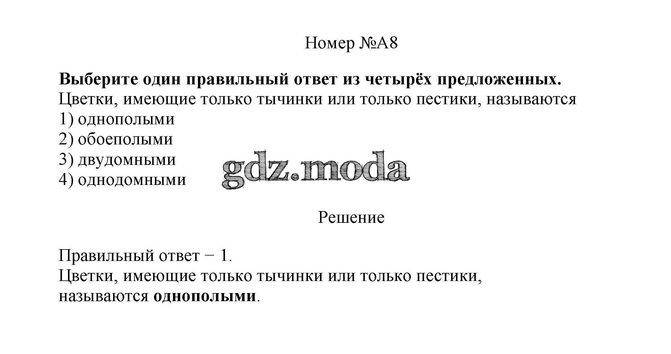 тренировочные задания / строение и многообразие покрытосеменных растений / задания части A / 8