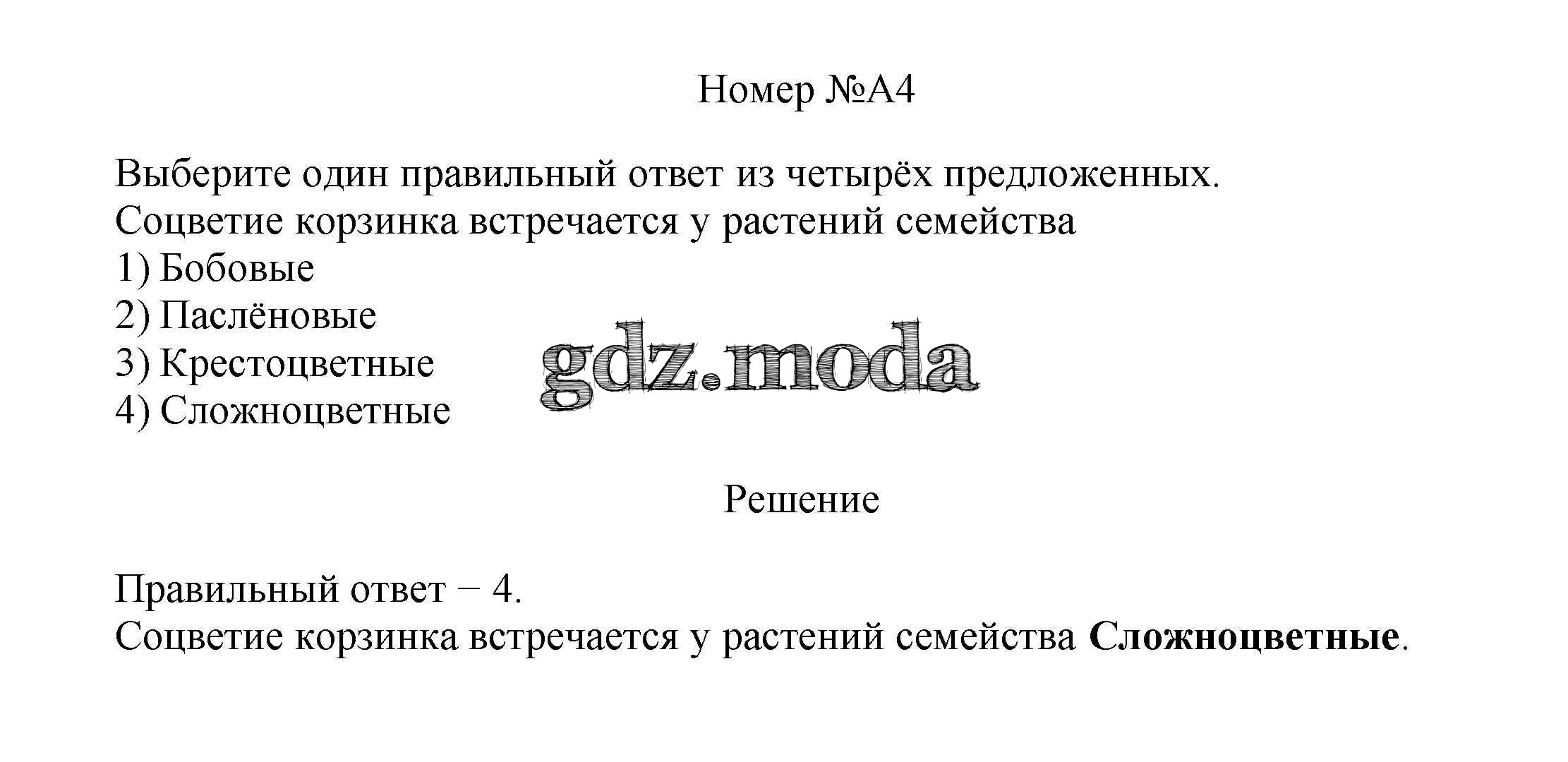 ОТВЕТ на задание № 4 Рабочая тетрадь по Биологии 6 класс Пасечник УМК