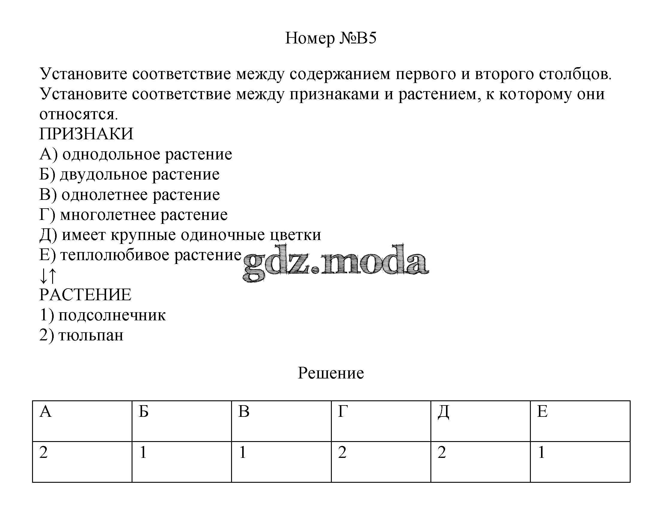 ОТВЕТ на задание № 5 Рабочая тетрадь по Биологии 6 класс Пасечник УМК