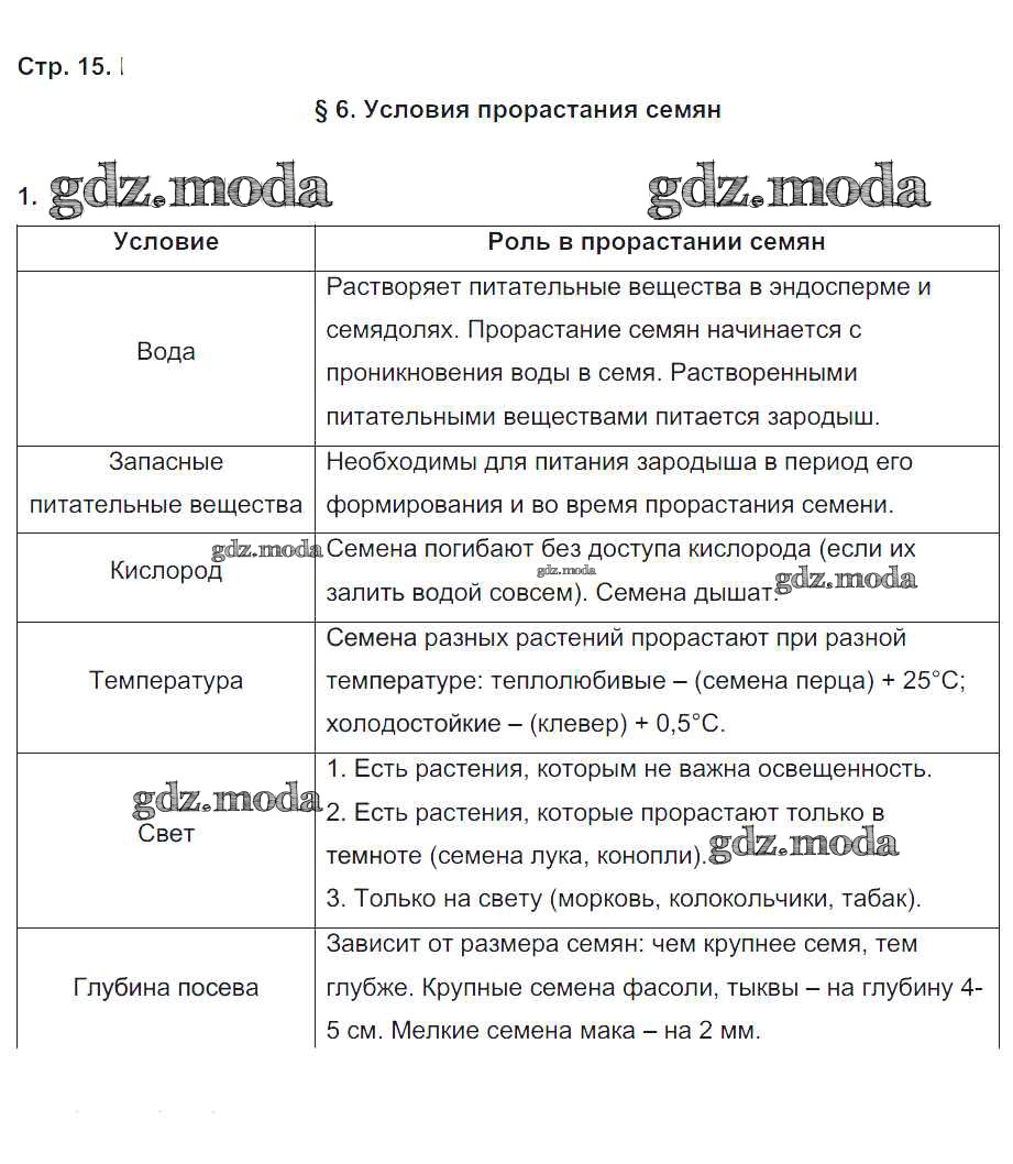 ГДЗ решение к заданию № 15 Биология 6 класс рабочая тетрадь Пономарева И.Н. Вентана-граф 2020 Часть 1, Часть 2 ФГОС бесплатно на гдз.мода!