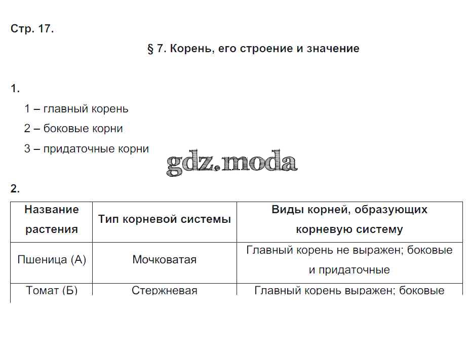ГДЗ решение к заданию № 17 Биология 6 класс рабочая тетрадь Пономарева И.Н. Вентана-граф 2020 Часть 1, Часть 2 ФГОС бесплатно на гдз.мода!