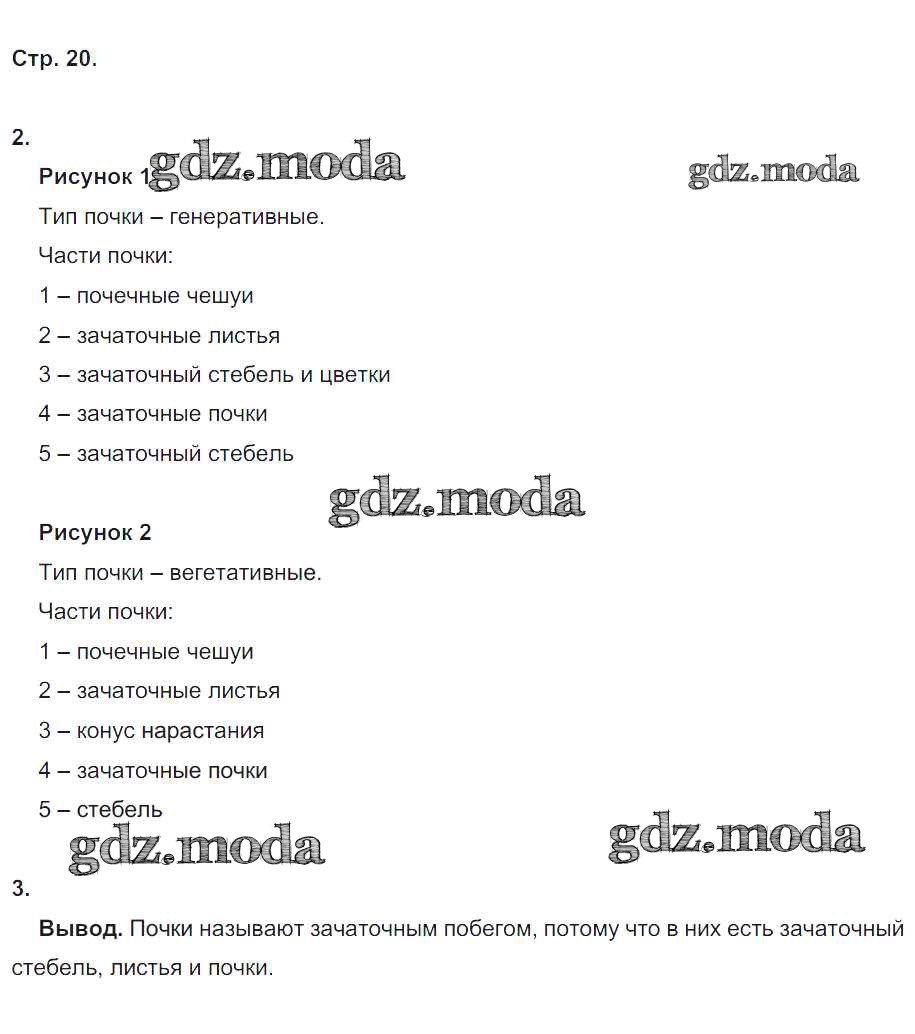 ГДЗ решение к заданию № 20 Биология 6 класс рабочая тетрадь Пономарева И.Н. Вентана-граф 2020 Часть 1, Часть 2 ФГОС бесплатно на гдз.мода!