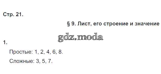 ГДЗ решение к заданию № 21 Биология 6 класс рабочая тетрадь Пономарева И.Н. Вентана-граф 2020 Часть 1, Часть 2 ФГОС бесплатно на гдз.мода!