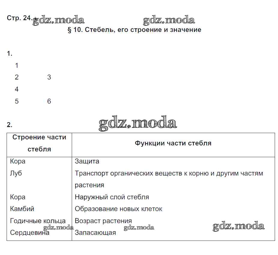 ГДЗ решение к заданию № 24 Биология 6 класс рабочая тетрадь Пономарева И.Н. Вентана-граф 2020 Часть 1, Часть 2 ФГОС бесплатно на гдз.мода!