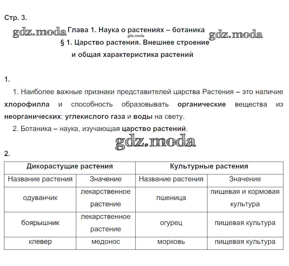 ГДЗ решение к заданию № 3 Биология 6 класс рабочая тетрадь Пономарева И.Н. Вентана-граф 2020 Часть 1, Часть 2 ФГОС бесплатно на гдз.мода!