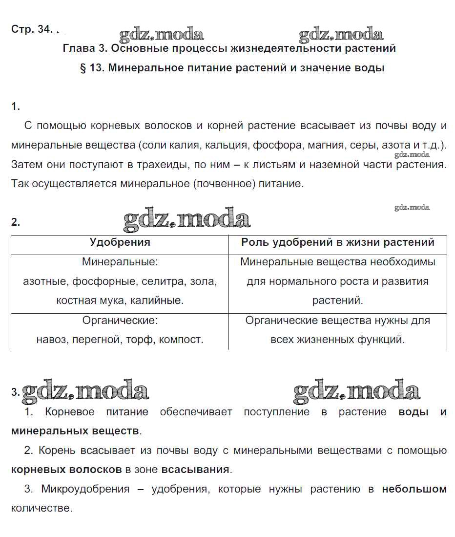 ГДЗ решение к заданию № 34 Биология 6 класс рабочая тетрадь Пономарева И.Н. Вентана-граф 2020 Часть 1, Часть 2 ФГОС бесплатно на гдз.мода!