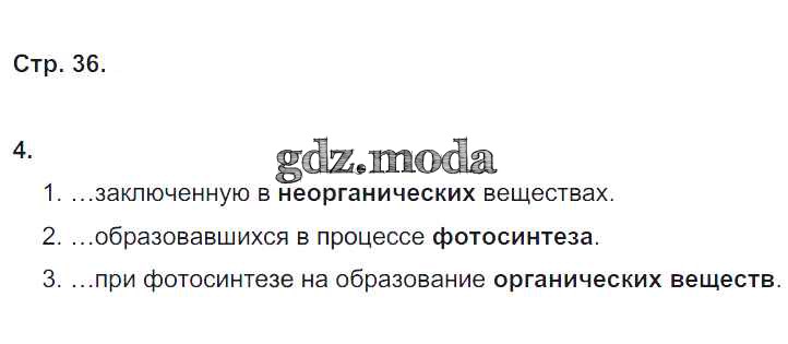 ГДЗ решение к заданию № 36 Биология 6 класс рабочая тетрадь Пономарева И.Н. Вентана-граф 2020 Часть 1, Часть 2 ФГОС бесплатно на гдз.мода!