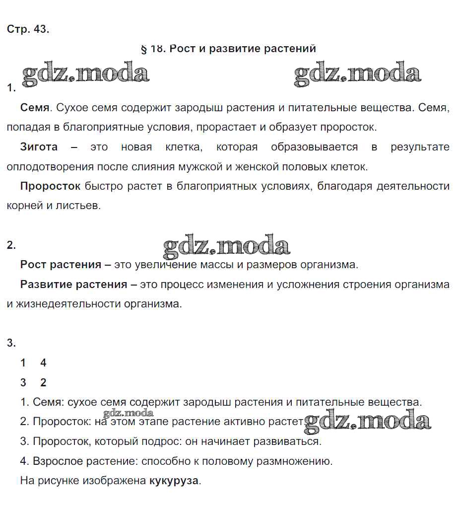 ГДЗ решение к заданию № 43 Биология 6 класс рабочая тетрадь Пономарева И.Н. Вентана-граф 2020 Часть 1, Часть 2 ФГОС бесплатно на гдз.мода!