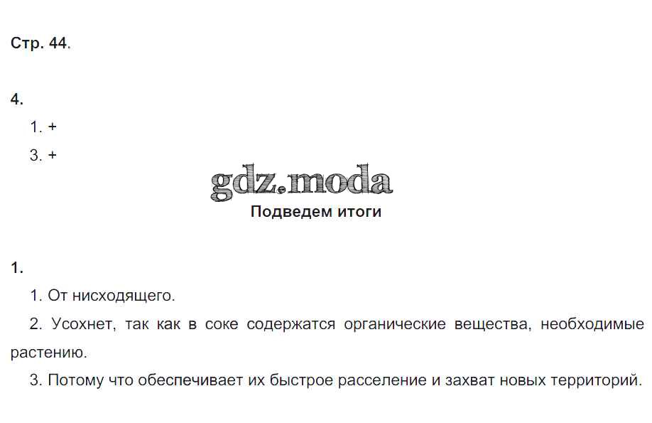 ГДЗ решение к заданию № 44 Биология 6 класс рабочая тетрадь Пономарева И.Н. Вентана-граф 2020 Часть 1, Часть 2 ФГОС бесплатно на гдз.мода!