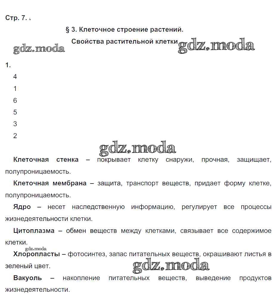 ГДЗ решение к заданию № 7 Биология 6 класс рабочая тетрадь Пономарева И.Н. Вентана-граф 2020 Часть 1, Часть 2 ФГОС бесплатно на гдз.мода!