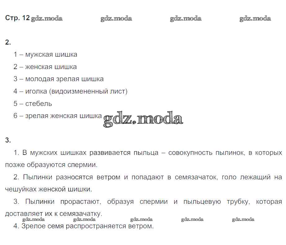 ГДЗ решение к заданию № 12 Биология 6 класс рабочая тетрадь Пономарева И.Н. Вентана-граф 2020 Часть 1, Часть 2 ФГОС бесплатно на гдз.мода!