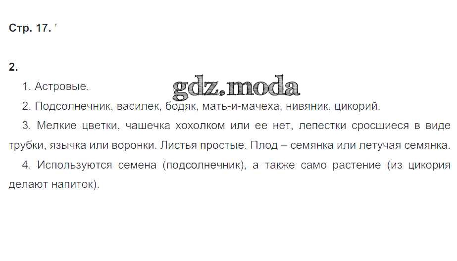 ГДЗ решение к заданию № 17 Биология 6 класс рабочая тетрадь Пономарева И.Н. Вентана-граф 2020 Часть 1, Часть 2 ФГОС бесплатно на гдз.мода!