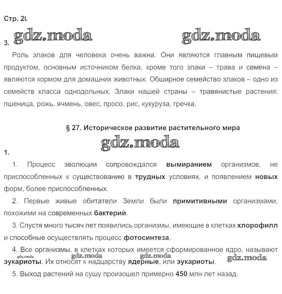 ГДЗ решение к заданию № 20 Биология 6 класс рабочая тетрадь Пономарева И.Н. Вентана-граф 2020 Часть 1, Часть 2 ФГОС бесплатно на гдз.мода!