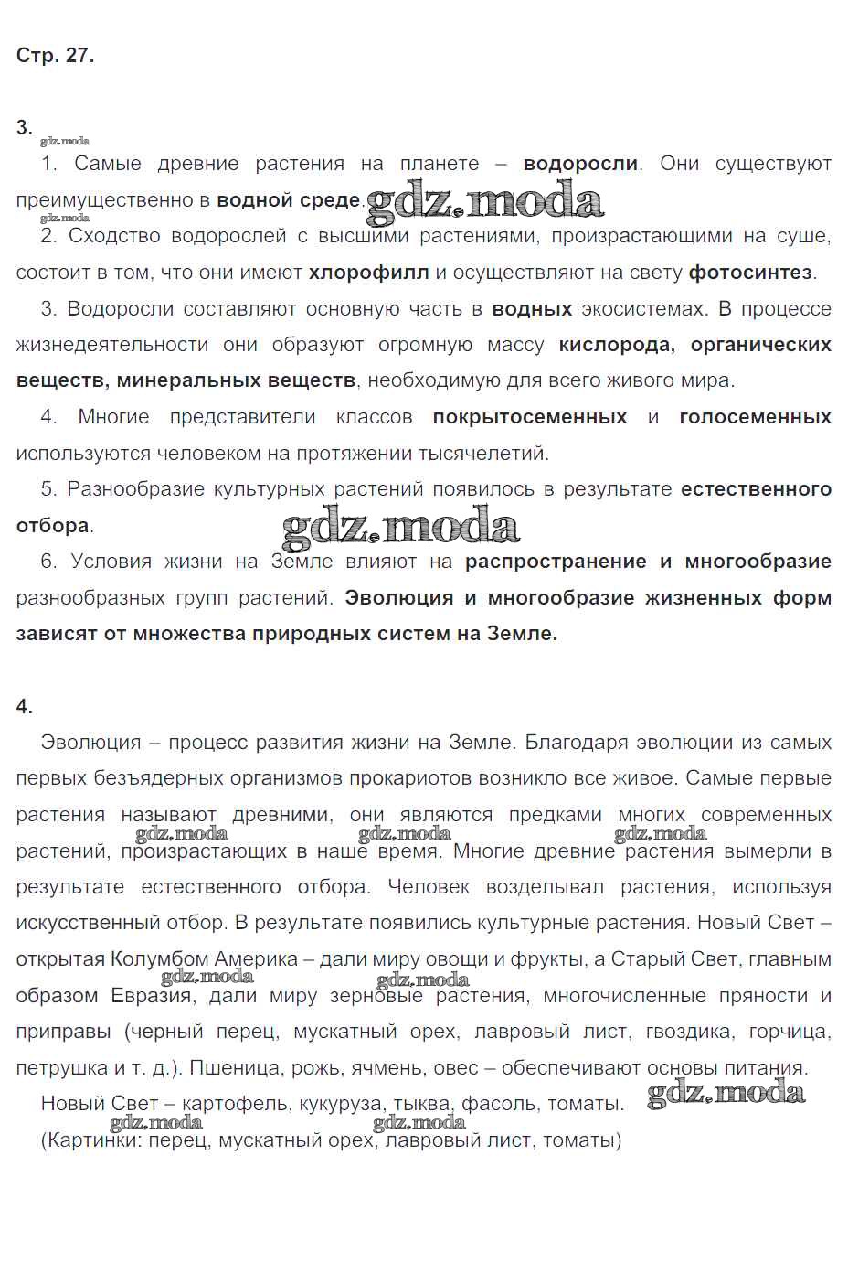 ГДЗ решение к заданию № 27 Биология 6 класс рабочая тетрадь Пономарева И.Н. Вентана-граф 2020 Часть 1, Часть 2 ФГОС бесплатно на гдз.мода!