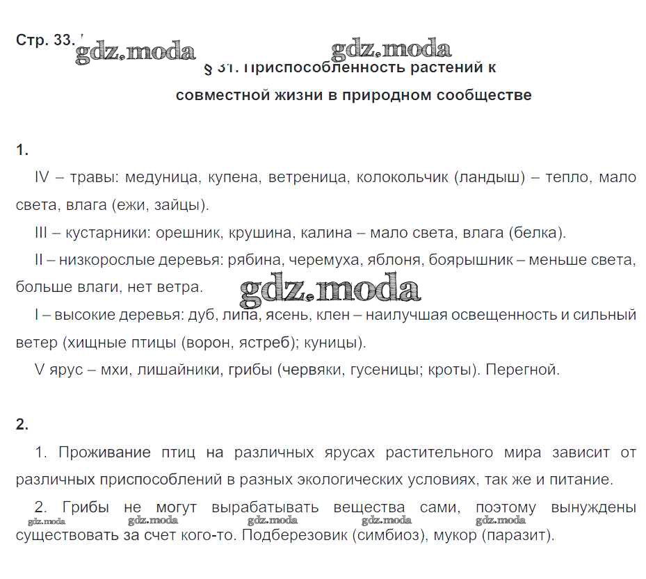 ГДЗ решение к заданию № 33 Биология 6 класс рабочая тетрадь Пономарева И.Н. Вентана-граф 2020 Часть 1, Часть 2 ФГОС бесплатно на гдз.мода!