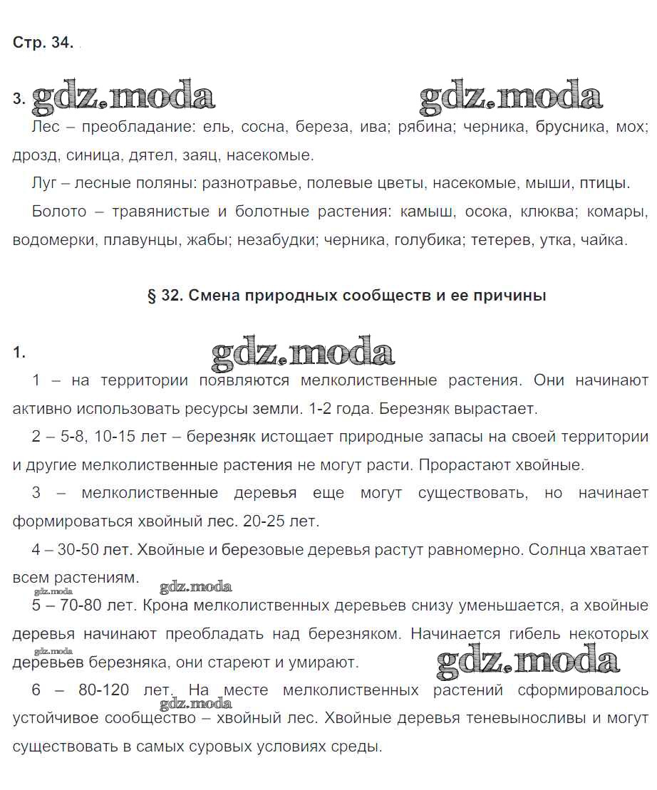 ГДЗ решение к заданию № 34 Биология 6 класс рабочая тетрадь Пономарева И.Н. Вентана-граф 2020 Часть 1, Часть 2 ФГОС бесплатно на гдз.мода!