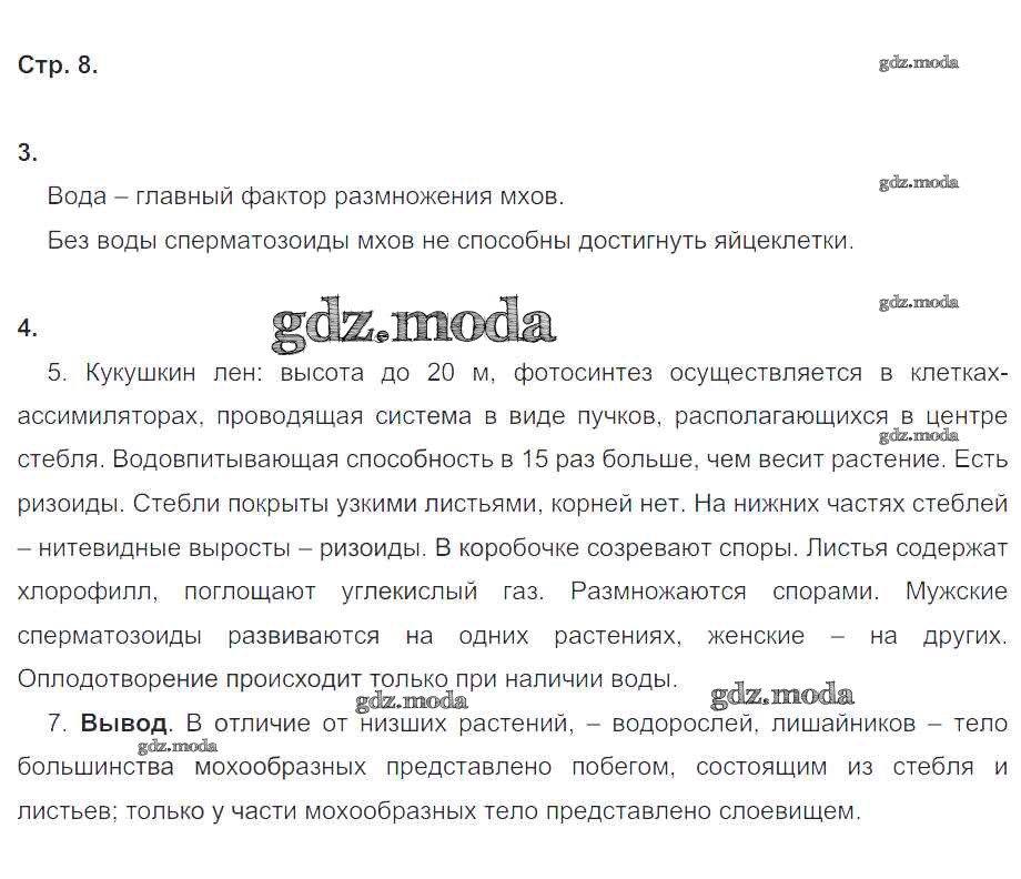 ГДЗ решение к заданию № 8 Биология 6 класс рабочая тетрадь Пономарева И.Н. Вентана-граф 2020 Часть 1, Часть 2 ФГОС бесплатно на гдз.мода!