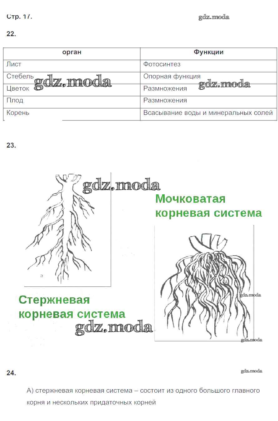 ГДЗ решение к заданию № 17 Биология 6 класс рабочая тетрадь Сонин Н.И. Дрофа 2020 ФГОС бесплатно на гдз.мода!